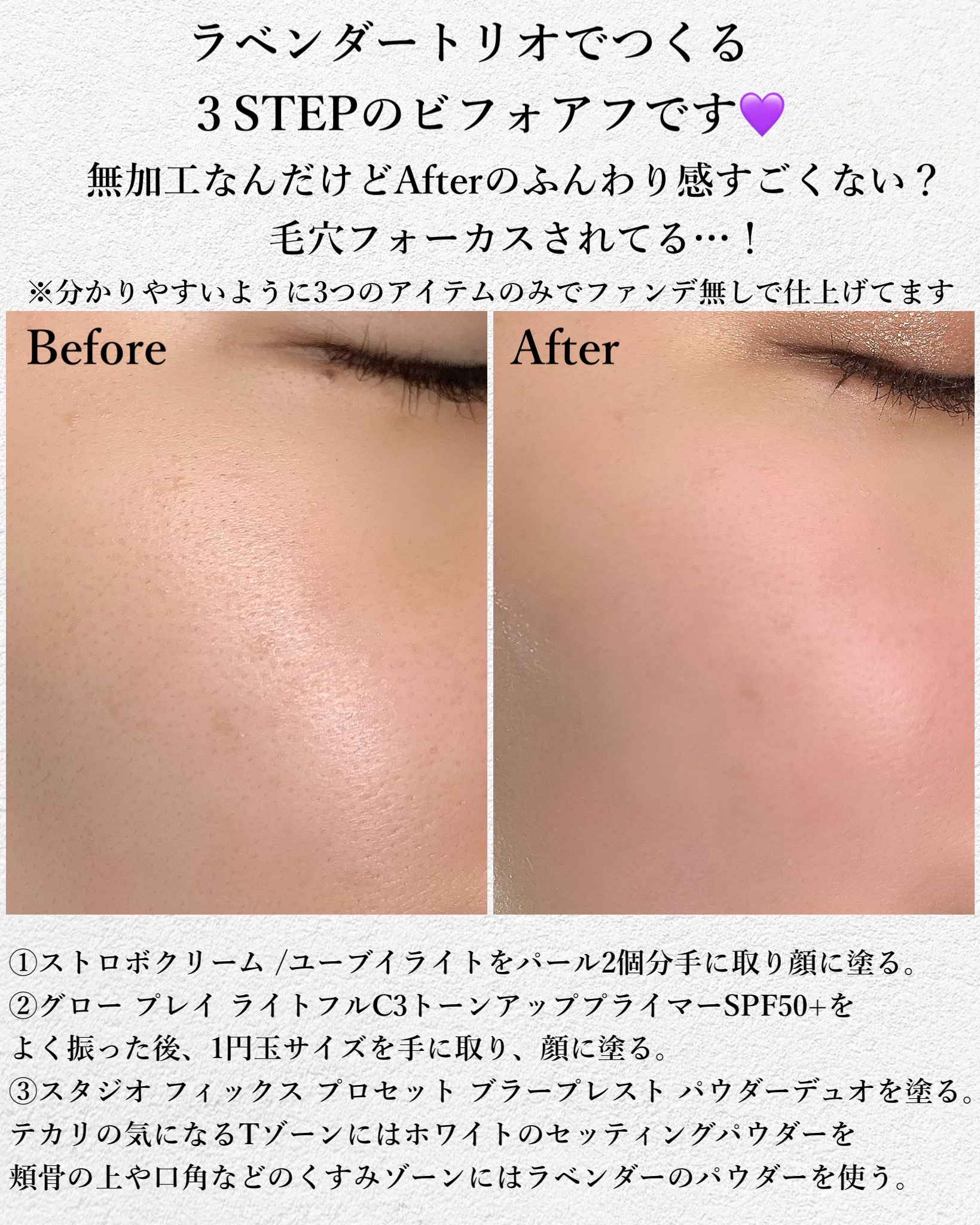 ⋱美しすぎる🥹✨ツヤラベンダーで透明感爆誕!⋰崩れない、ノイズレス透明肌*として新発売したラベンダートリオ🪻ラベンダーカラーってだけでも魅力的なのに仕上がりまで可愛いってどういうこと?😭❤️透明肌の作り方🫧-Step①プライマー前につかって透...