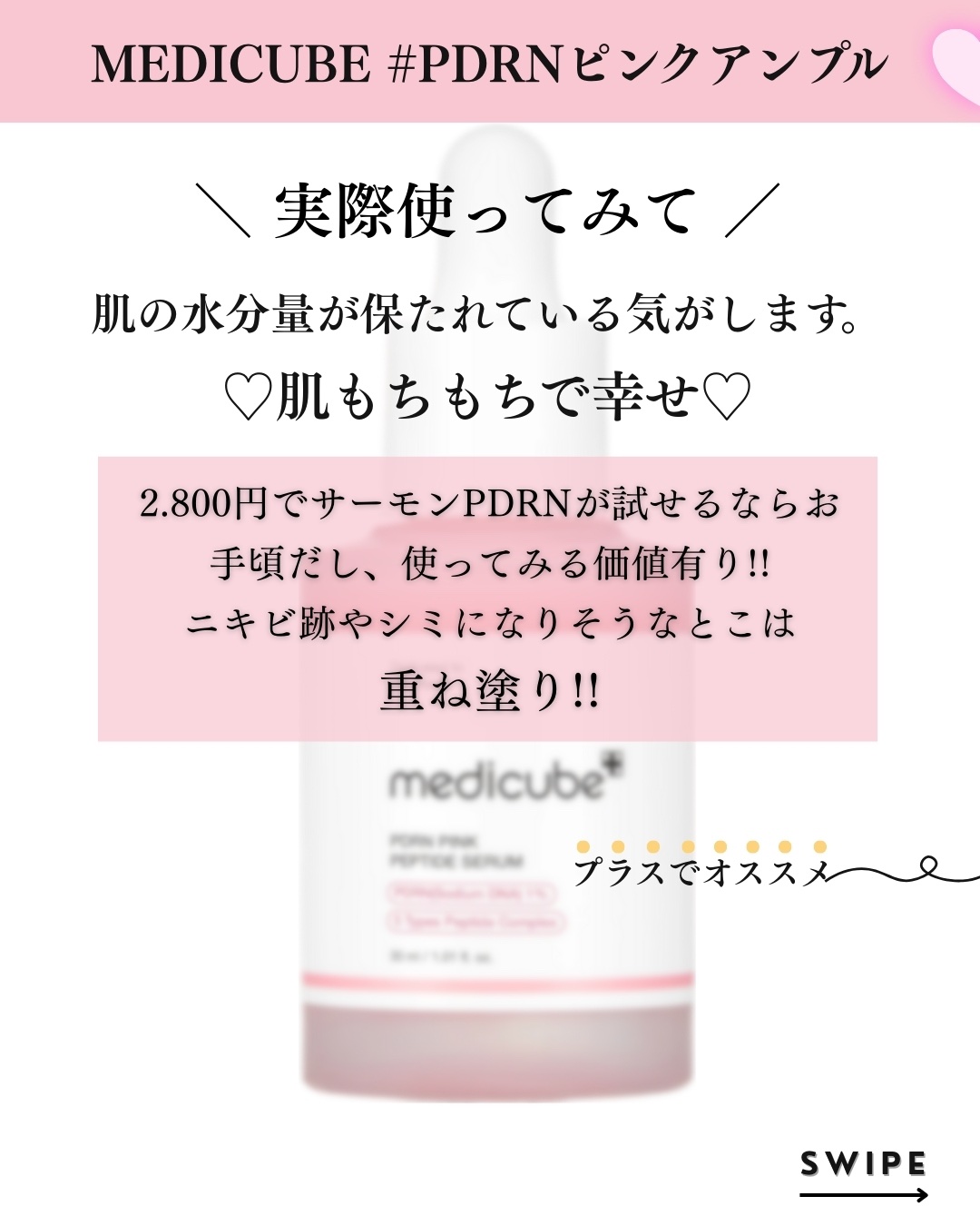 MEDICUBE PDRNピンクアンプル PDRN 10,000ppm配合 | 2,530円 |
