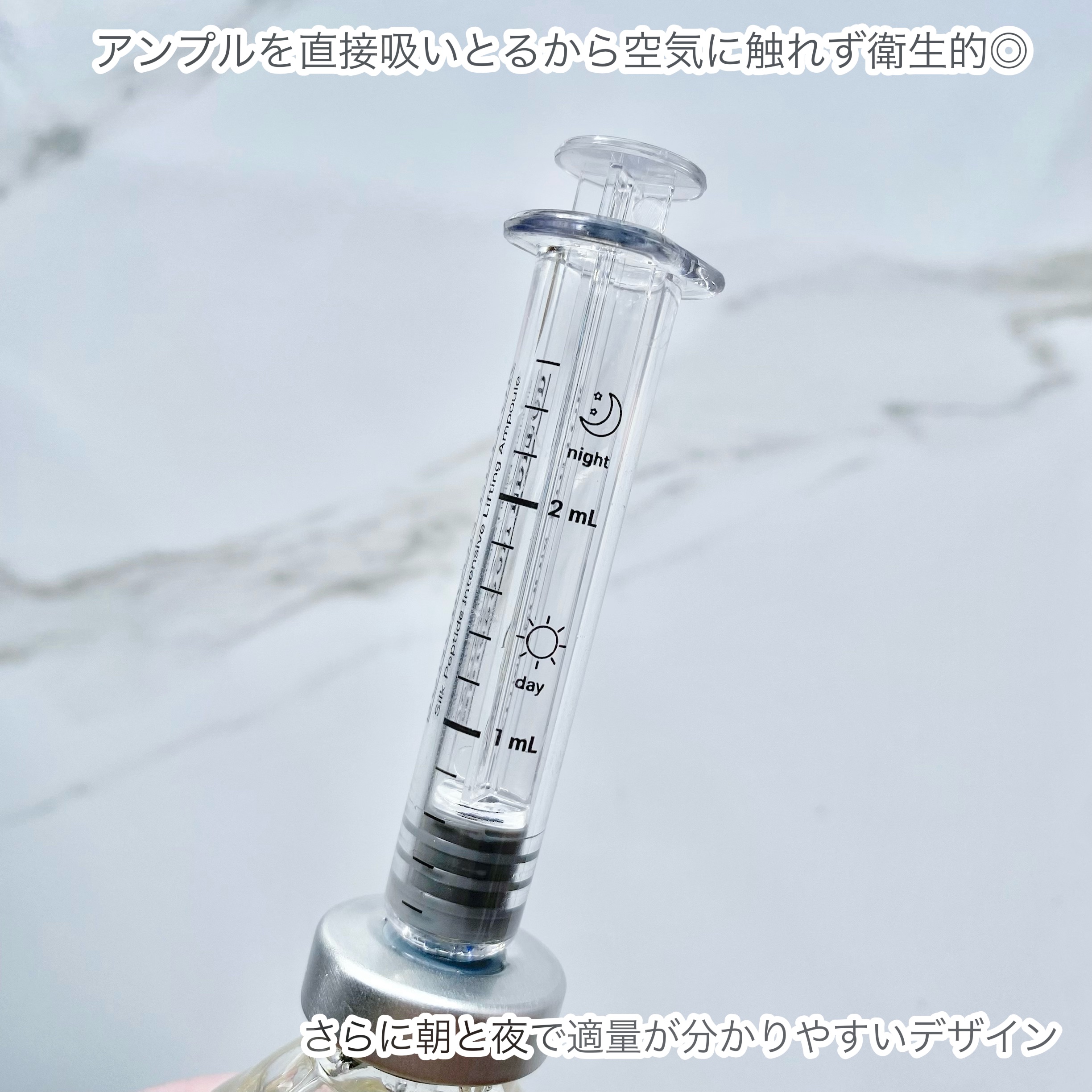 高濃度*1シルク*2+ペプチド*3で深いしわも、弾力も1本で💛*1ブランド内*2シルク水(保湿成分)*3保湿成分シルクペプチドインテンシブリフティングアンプル注射器みたいな特徴的なパケがかわいい💉アンプルに差し込んで吸い上げて使うのが斬新です...