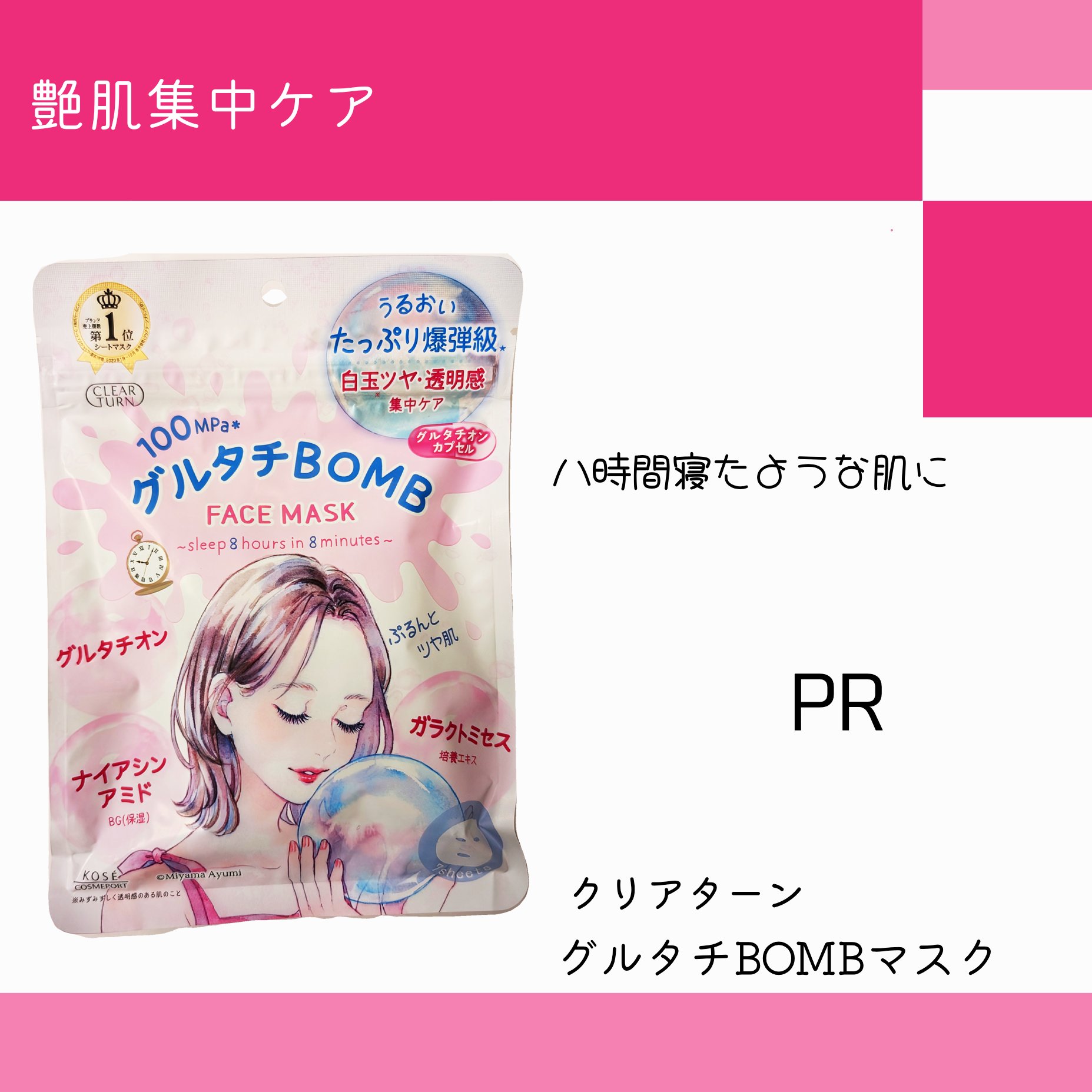 #PR#クリアターン◇クリアターングルタチBOBMマスククリアターン BOMBシリーズから2025年3月21日に新しいフェイスマスクが新登場✨肌の水分量とキメをととのえ、透明感のある白玉※ツヤ美肌へ導いてくれるそう!透明感・うるおいUPが期待...