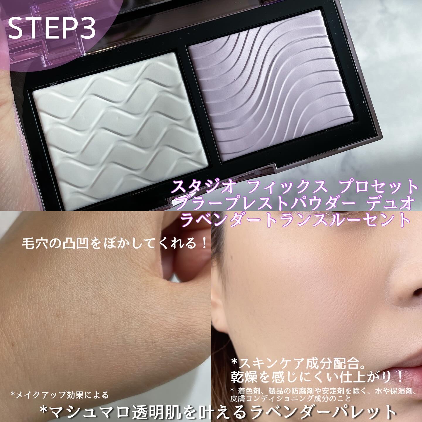 ⋱美しすぎる🥹✨ツヤラベンダーで透明感爆誕!⋰崩れない、ノイズレス透明肌*として新発売したラベンダートリオ🪻ラベンダーカラーってだけでも魅力的なのに仕上がりまで可愛いってどういうこと?😭❤️透明肌の作り方🫧-Step①プライマー前につかって透...