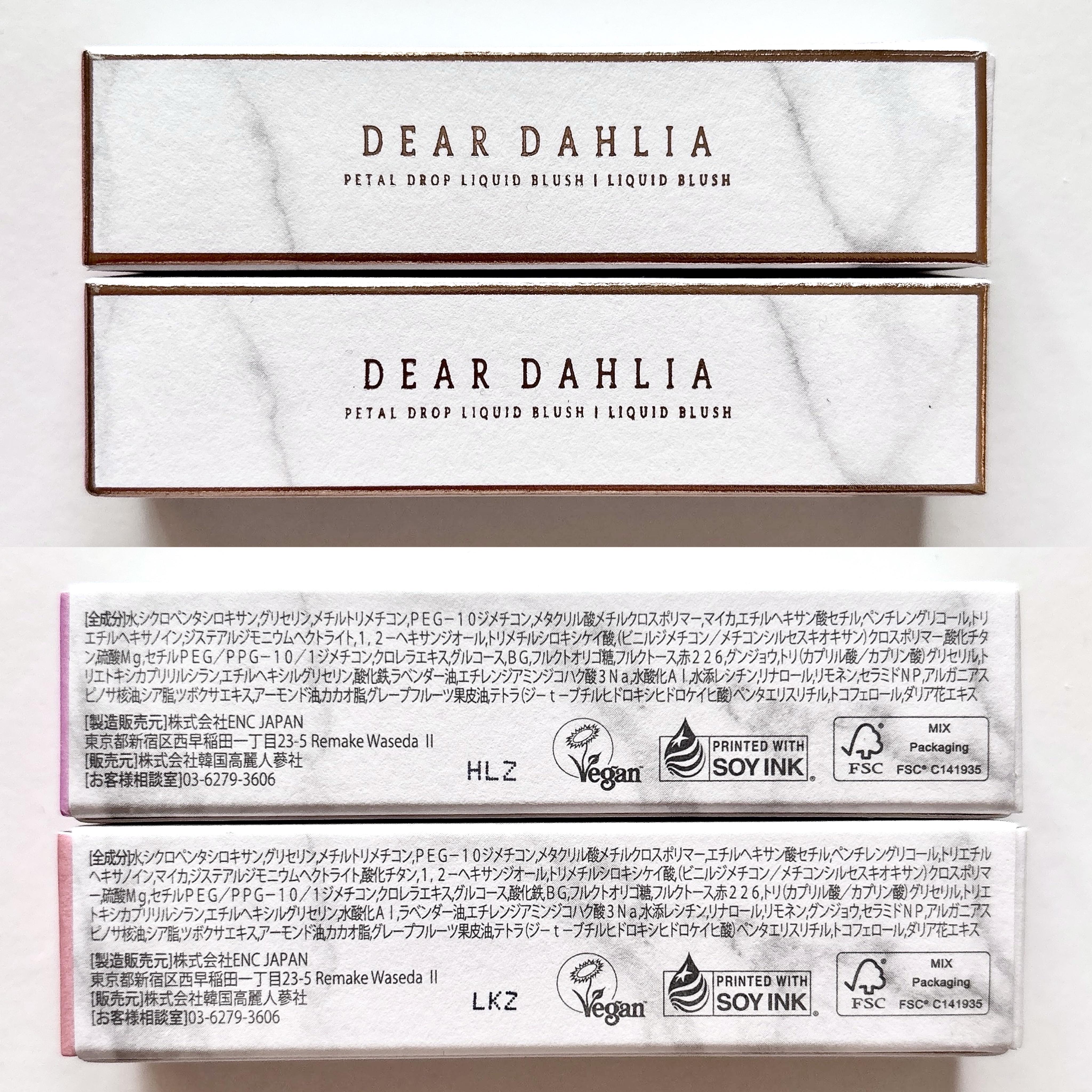- <ベアリー(BARELY) > 水、シクロペンタシロキサン、グリセリン、メチルトリメチコン、PEG-10ジメチコン、メタクリル酸メチルクロスポリマー、エチルヘキサン酸セチル、ペンチレングリコール、トリエチルヘキサノイン、マイカ、ジステアルジモニウムヘクトライト、酸化チタン、1,2-ヘキサンジオール、トリメチルシロキシケイ酸、(ビニルジメチコン/メチコンシルセスキオキサン)クロスポリマー、硫酸Mg、セチルPEG/PPG-10/1ジメチコン、クロレラエキス、グルコース、酸化鉄、BG、フルクトオリゴ糖、フルクトース、赤226、トリ(カプリル酸/カプリン酸)グリセリル、トリエトキシカプリリルシラン、エチルヘキシルグリセリン、水酸化Al、ラベンダー油、エチレンジアミンジコハク酸3Na、水添レシチン、リナロール、リモネン、グンジョウ、セラミドNP、アルガニアスピノサ核油、シア脂、ツボクサエキス、アーモンド油、カカオ脂、グレープフルーツ果皮油、テトラ(ジ-t-ブチルヒドロキシヒドロケイヒ酸)ペンタエリスリチル、トコフェロール、ダリア花エキス <ドリーミー(DREAMY) > 水、シクロペンタシロキサン、グリセリン、メチルトリメチコン、PEG-10ジメチコン、メタクリル酸メチルクロスポリマー、エチルヘキサン酸セチル、ペンチレングリコール、トリエチルヘキサノイン、マイカ、ジステアルジモニウムヘクトライト、酸化チタン、1,2-ヘキサンジオール、トリメチルシロキシケイ酸、(ビニルジメチコン/メチコンシルセスキオキサン)クロスポリマー、硫酸Mg、セチルPEG/PPG-10/1ジメチコン、クロレラエキス、グルコース、赤226、BG、フルクトオリゴ糖、フルクトース、グンジョウ、酸化鉄、トリ(カプリル酸/カプリン酸)グリセリル、トリエトキシカプリリルシラン、エチルヘキシルグリセリン、ラベンダー油、エチレンジアミンジコハク酸3Na、水酸化Al、水添レシチン、リナロール、リモネン、セラミドNP、アルガニアスピノサ核油、シア脂、ツボクサエキス、アーモンド油、カカオ脂、グレープフルーツ果皮油、テトラ(ジ-t-ブチルヒドロキシヒドロケイヒ酸)ペンタエリスリチル、トコフェロール、ダリア花エキス <グローリー(GLORY) > 水、シクロペンタシロキサン、グリセリン、メチルトリメチコン、PEG-10ジメチコン、メタクリル酸メチルクロスポリマー、マイカ、エチルヘキサン酸セチル、ペンチレングリコール、トリエチルヘキサノイン、ジステアルジモニウムヘクトライト、1,2-ヘキサンジオール、トリメチルシロキシケイ酸、(ビニルジメチコン/メチコンシルセスキオキサン)クロスポリマー、硫酸Mg、酸化チタン、セチルPEG/PPG-10/1ジメチコン、クロレラエキス、グルコース、酸化鉄、BG、フルクトオリゴ糖、フルクトース、グンジョウ、赤226、トリエトキシカプリリルシラン、トリ(カプリル酸/カプリン酸)グリセリル、エチルヘキシルグリセリン、ラベンダー油、エチレンジアミンジコハク酸3Na、水添レシチン、リナロール、水酸化Al、リモネン、セラミドNP、アルガニアスピノサ核油、シア脂、ツボクサエキス、アーモンド油、カカオ脂、グレープフルーツ果皮油、テトラ(ジ-t-ブチルヒドロキシヒドロケイヒ酸)ペンタエリスリチル、トコフェロール、ダリア花エキス <ムーディー(MOODY) > 水、シクロペンタシロキサン、グリセリン、メチルトリメチコン、PEG-10ジメチコン、メタクリル酸メチルクロスポリマー、マイカ、エチルヘキサン酸セチル、ペンチレングリコール、トリエチルヘキサノイン、ジステアルジモニウムヘクトライト、1,2-ヘキサンジオール、トリメチルシロキシケイ酸、(ビニルジメチコン/メチコンシルセスキオキサン)クロスポリマー、硫酸Mg、酸化チタン、セチルPEG/PPG-10/1ジメチコン、クロレラエキス、グルコース、赤226、BG、フルクトオリゴ糖、フルクトース、酸化鉄、トリ(カプリル酸/カプリン酸)グリセリル、トリエトキシカプリリルシラン、エチルヘキシルグリセリン、ラベンダー油、エチレンジアミンジコハク酸3Na、グンジョウ、水添レシチン、リナロール、水酸化Al、リモネン、セラミドNP、アルガニアスピノサ核油、シア脂、ツボクサエキス、アーモンド油、カカオ脂、グレープフルーツ果皮油、テトラ(ジ-t-ブチルヒドロキシヒドロケイヒ酸)ペンタエリスリチル、トコフェロール、ダリア花エキス <タフィー(TAFFY)> 水、シクロペンタシロキサン、グリセリン、メチルトリメチコン、PEG-10ジメチコン、メタクリル酸メチルクロスポリマー、マイカ、エチルヘキサン酸セチル、ペンチレングリコール、トリエチルヘキサノイン、ジステアルジモニウムヘクトライト、1,2-ヘキサンジオール、トリメチルシロキシケイ酸、(ビニルジメチコン/メチコンシルセスキオキサン)クロスポリマー、酸化チタン、硫酸Mg、セチルPEG/PPG-10/1ジメチコン、クロレラエキス、グルコース、BG、フルクトオリゴ糖、フルクトース、赤226、グンジョウ、トリ(カプリル酸/カプリン酸)グリセリル、トリエトキシカプリリルシラン、エチルヘ