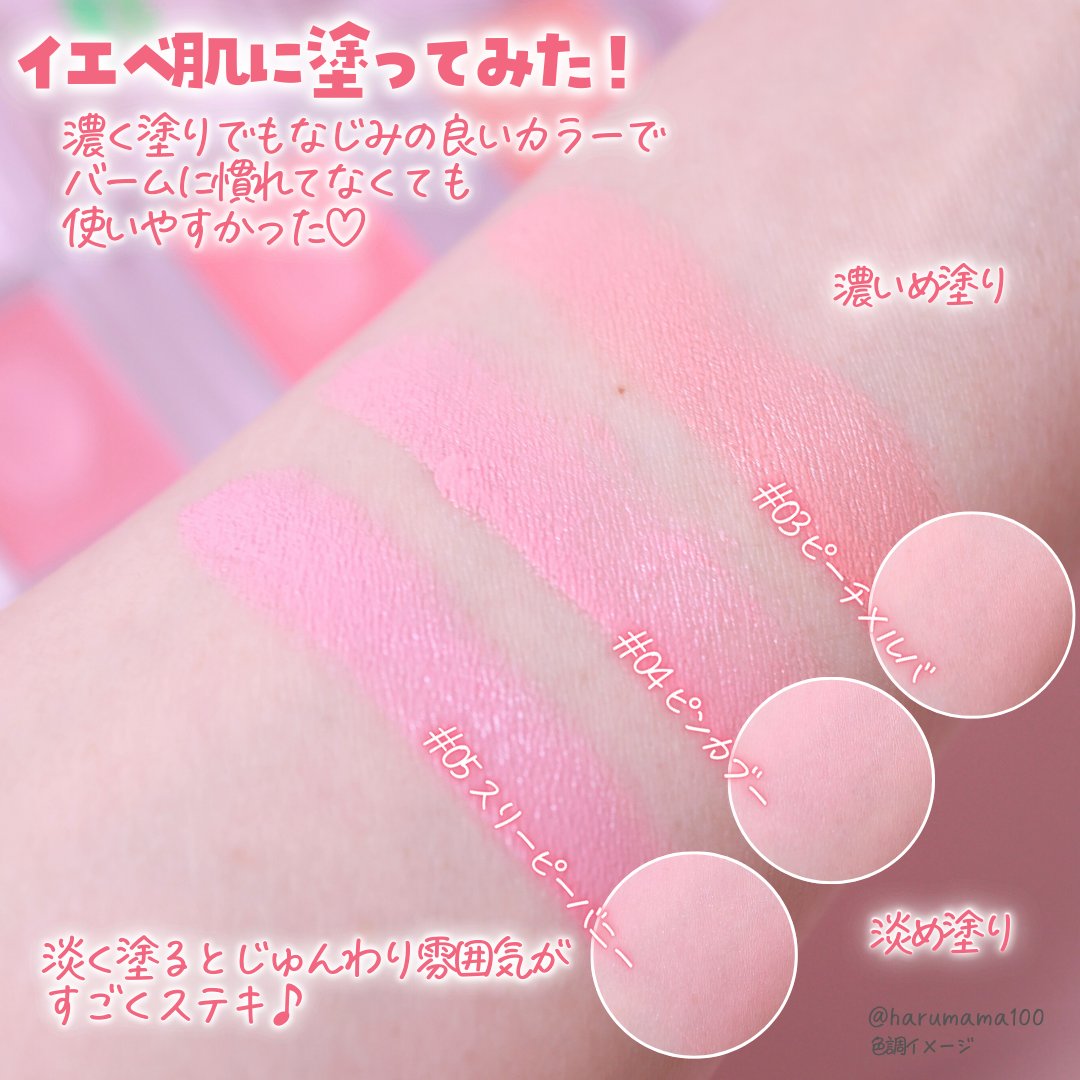 とろとろに柔らかいバームはリップにもチークにも使えるしっとりアイテム! ナチュ艶のうるうる感が凄く可愛い・・・💕 6色の多彩なラインナップだよ!ぜひチェックしてみてね🫶