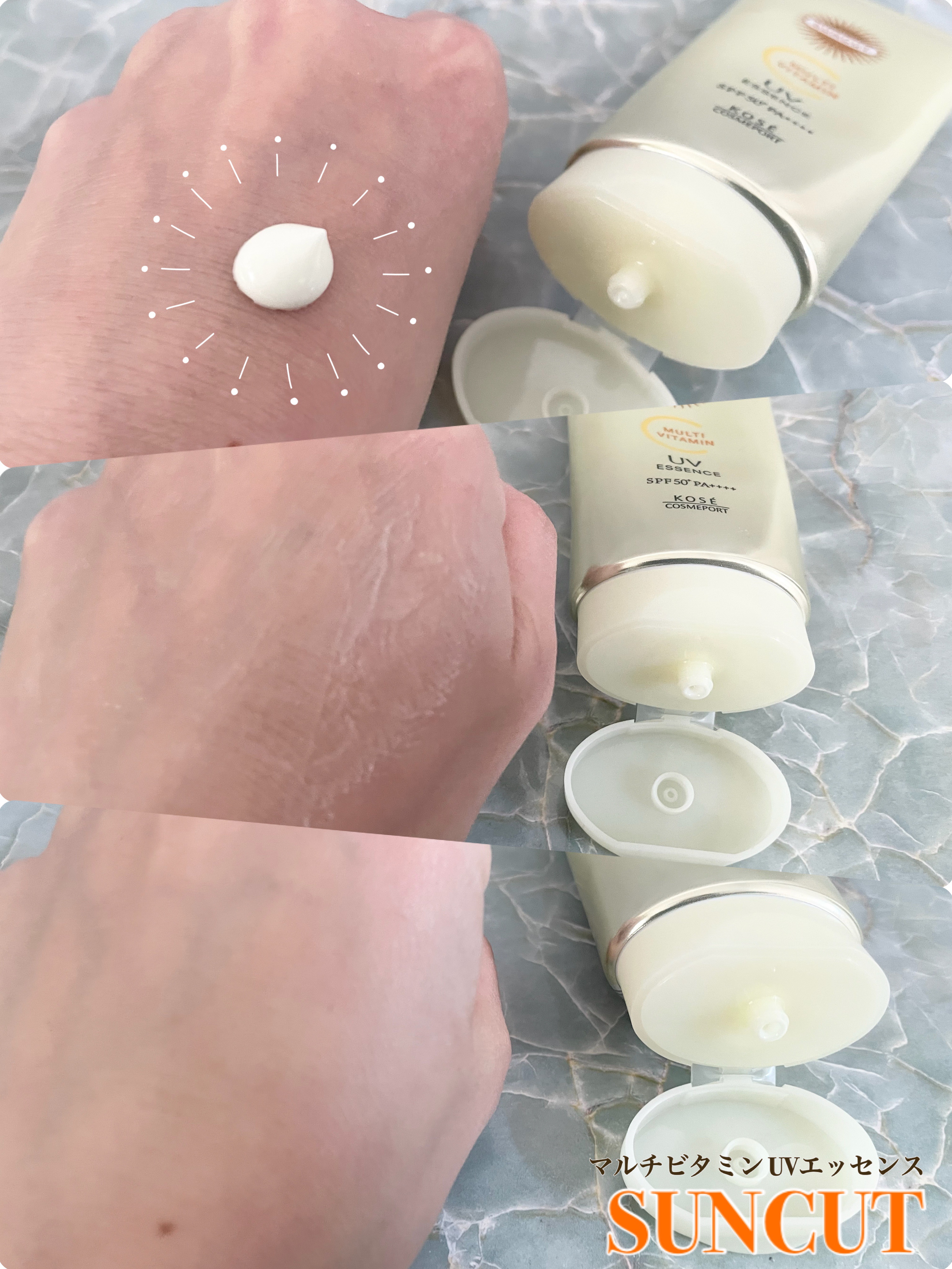 サンカットから先月発売されたUVエッセンスとミスト「マルチビタミンUV」を試してみたよ🤍SPF50+PA++++UVエッセンスはなめらかな塗りごこちで肌への密着感が👌伸びがいいから広範囲に使いやすい◎化粧下地としても使えるよ!UVミスト...
