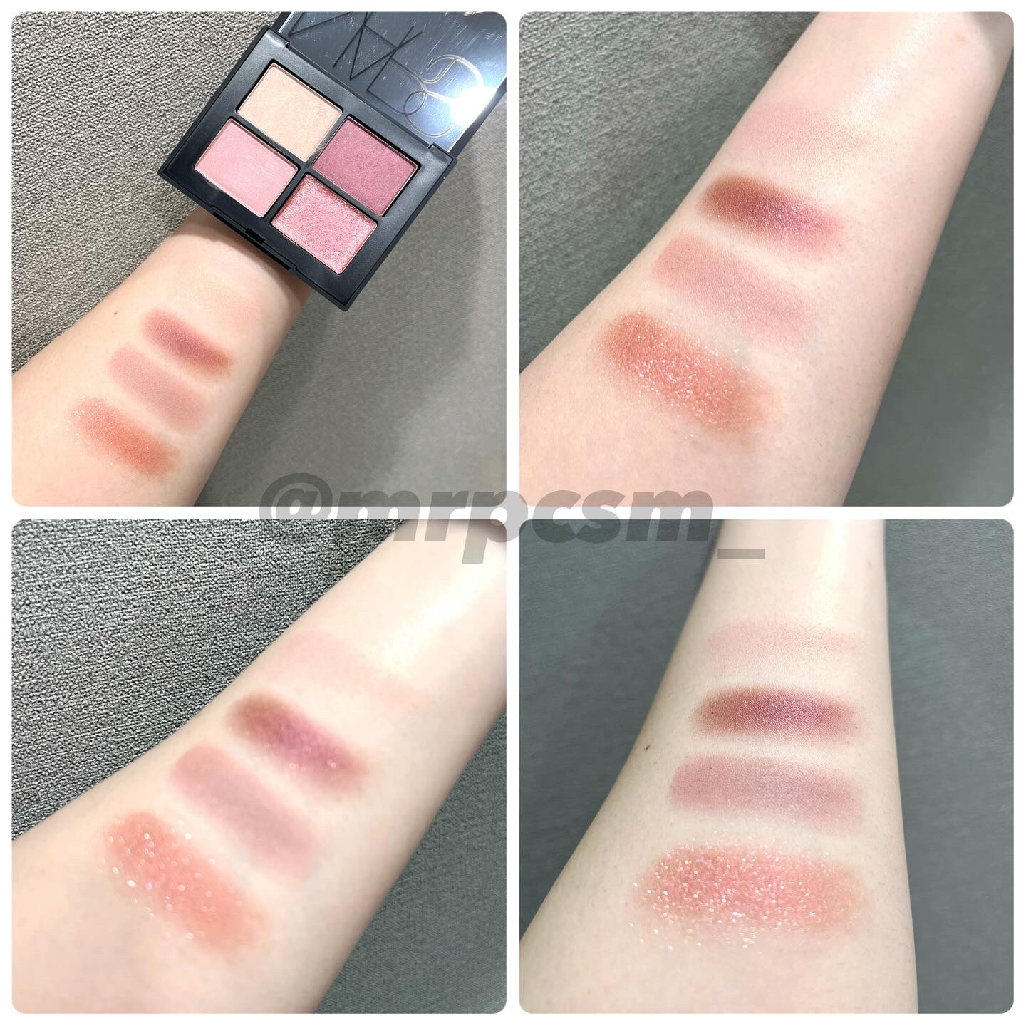 NARSクワッドアイシャドー04433KUALALUMPUR今月発売の新色イエベ向けカラーが多いNARSの青みよりのピンクブラウンパレット明るすぎないややピンクのグラデーションが作れてかっこよさも可愛さもバランス良し右下の多色ラメがめっちゃキ...