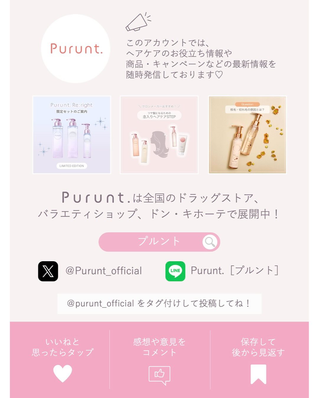 あなたはどっちのPurunt.(プルント)!?皆様もご存知の通り、プルントは現在2つのシリーズを展開中!ご自身の髪悩みに合うのは、どちらのシリーズでしょうか❔ぜひcheckしてみてください☝🏼🔍「プルント」とは?→美容室メーカーが、366日か...