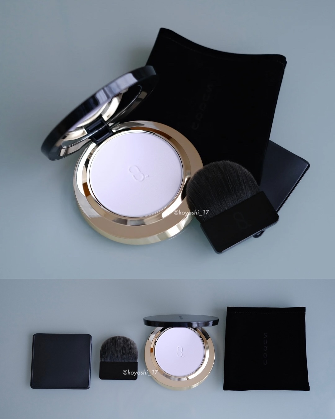さらさらキュッとした質感。ノンパールのパウダーがするするぴたっと密着してくれます。ふわっと透明感とほんのりツヤ感も残しつつなソフトマット。乾燥も気にならないです。厚塗り感もなく、粉っぽさもなくなじんでくれます。ブラシもふわふわで使いやすいよ。...