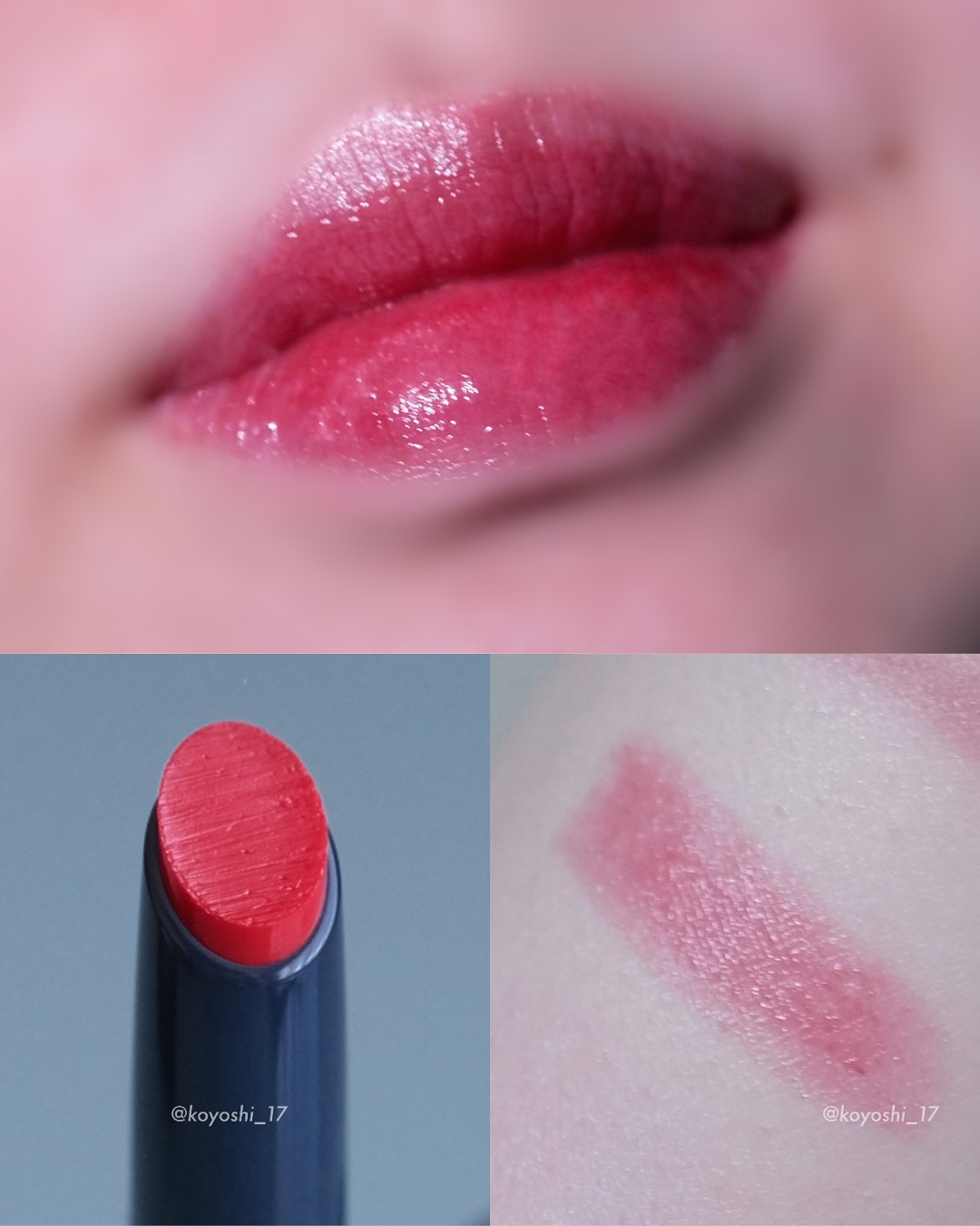 ぷるんとしたツヤが可愛い! 発色の良さとシアーな色づきを両立できてすごい! 体温でとろけて、唇に密着するように色づきます 少し圧をかけるように直塗りするとツヤが綺麗に出ます ビビンバ食べた後も色が残ってて嬉しかった🥰