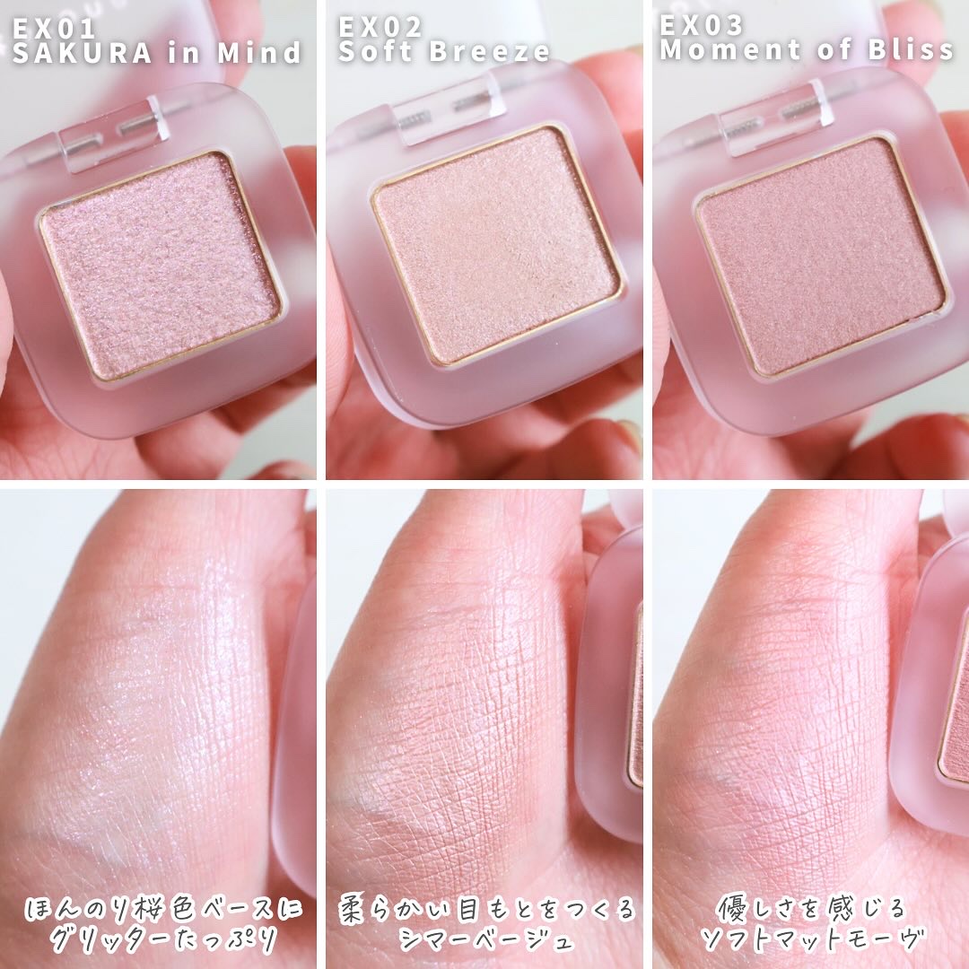桜の花びらを頰にのせたかのように血色感やつやめきがじわりとにじむ!3色とも凄く可愛い!!🥹💓 重ね使いしてもキレイ、ピンクパールがゆらめく桜ハイライトラメってわかるサイズのハイライトでトッピング的にチークに重ねると可愛い◎ 清らかに頰を染め、透き通る肌を叶えるライラックカラー桜っぽいカラーで春らしさ満点🌸