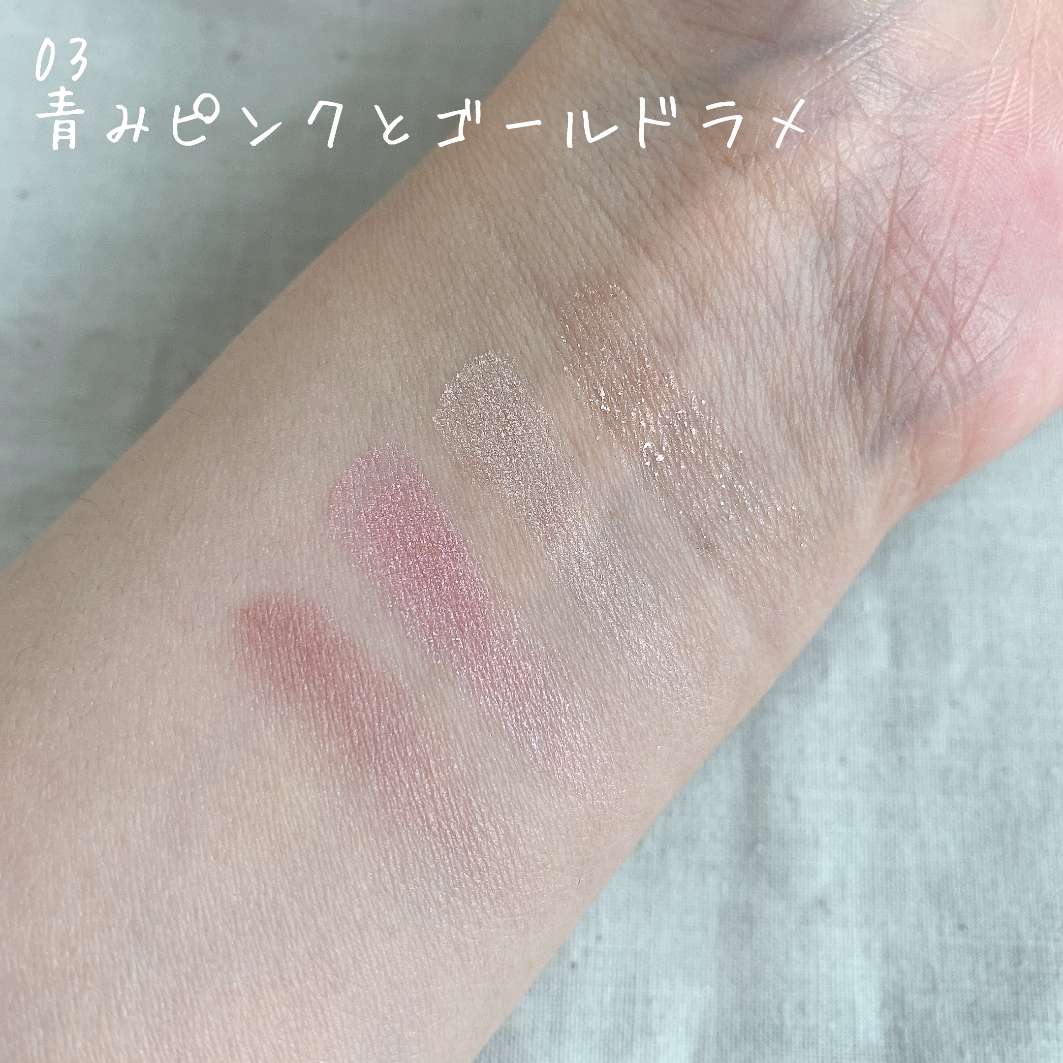 ペールトーンアイシャドウは淡色グラデでソフトな陰影を作る4色アイシャドウ。クリアカラーで輝度高めな多色ラメ、ベースカラーのパール、締め色がマットのどれもペールカラーで構成されています! 新色は既存2色より青みのあるカラーでブルベ夏の私の好みすぎました…!これは好きな人多そう…♡ しっとり溶け込むような柔らかな粉質 保湿成分(スクワラン・ホホバ種子油)配合でまぶたへの伸びが良く密着度も高め