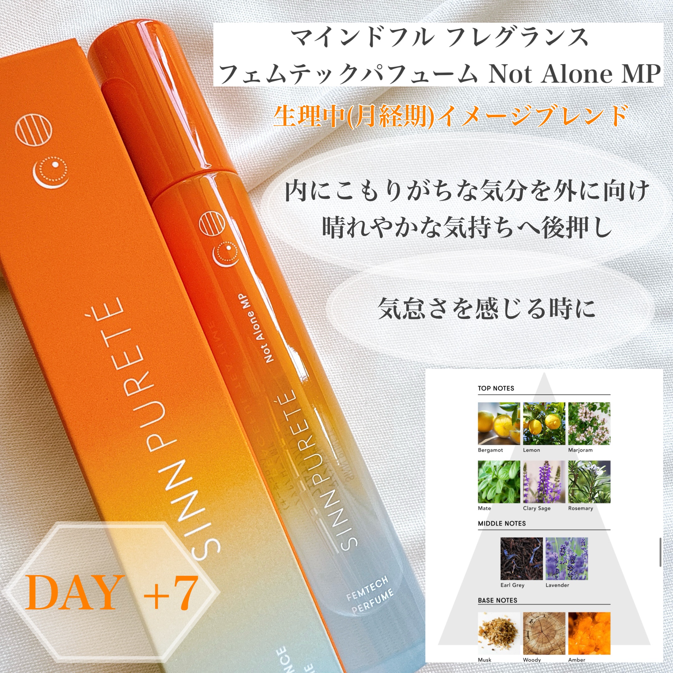 #生理中の心に寄り添う香り🍊マインドフルフレグランスフェムテックパフューム/NotAloneMPTOP:ベルガモット、レモン、マテ、マジョラム、クラリセージMIDDLE:アールグレイ、ラベンダーBASE:ムスク、ウッディ、アンバー生理前と生理...