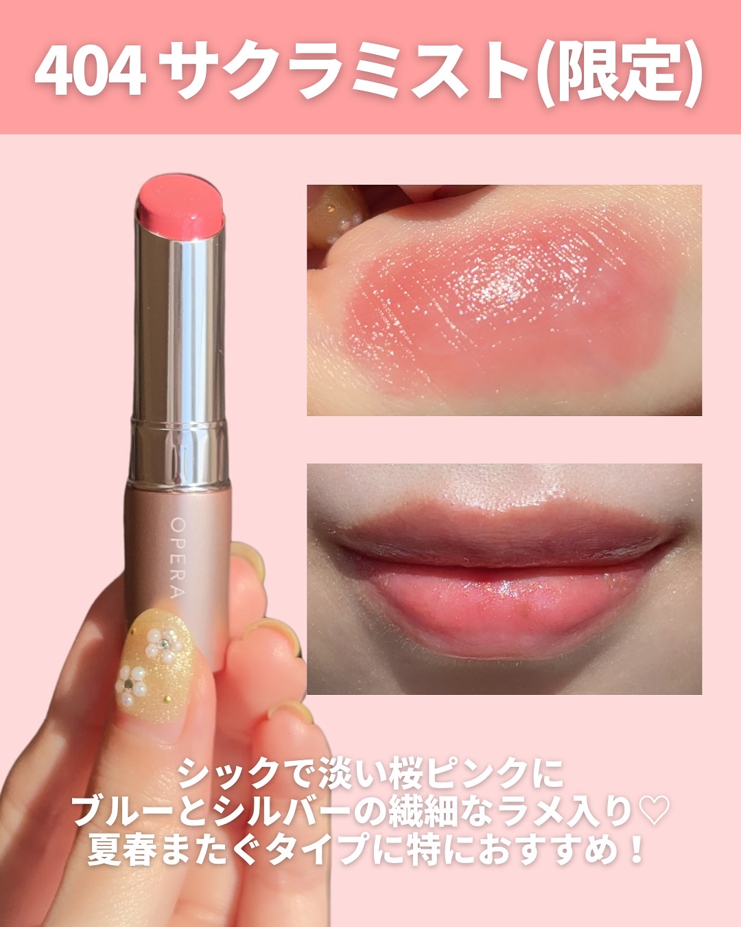 OPERAの新作桜リップ🌸🩷305ベイビーピンク🧡306アイシーベージュ・305ベイビーピンクシルバーラメがチラチラ輝くリップ・306アイシーベージュブルーラメがアクセントのリップ大好きなオペラのリップの春限定&新色🌸今回はイエベカラー2種を...