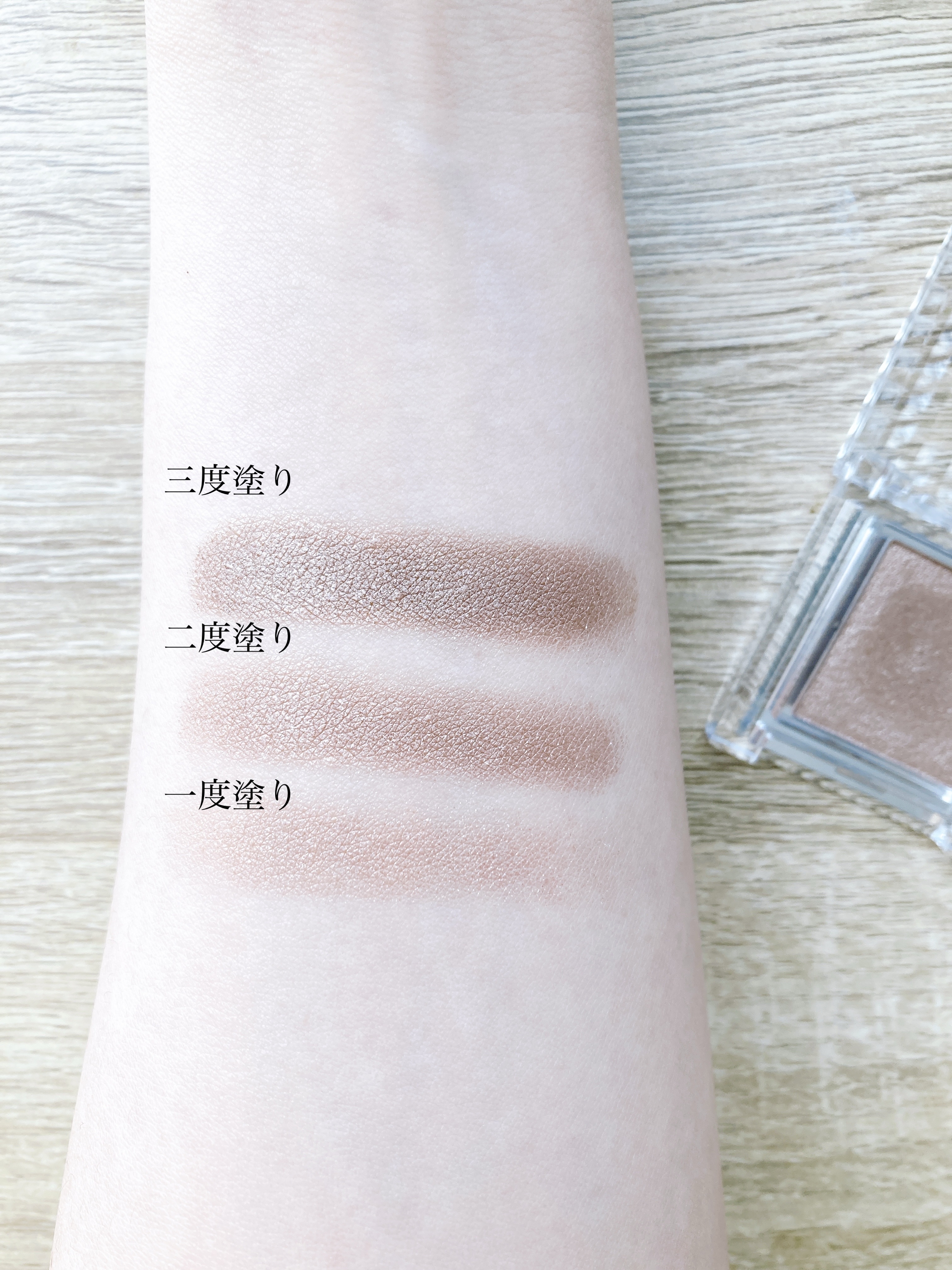 ダスティピンク購入。結構はっきりとした色味が入っていたのでどうかなとは思っていたのですが、使用量を調節したり、混ぜて使う事でケバくならず、とっても可愛い発色になりました!今っぽい目元に仕上がります!