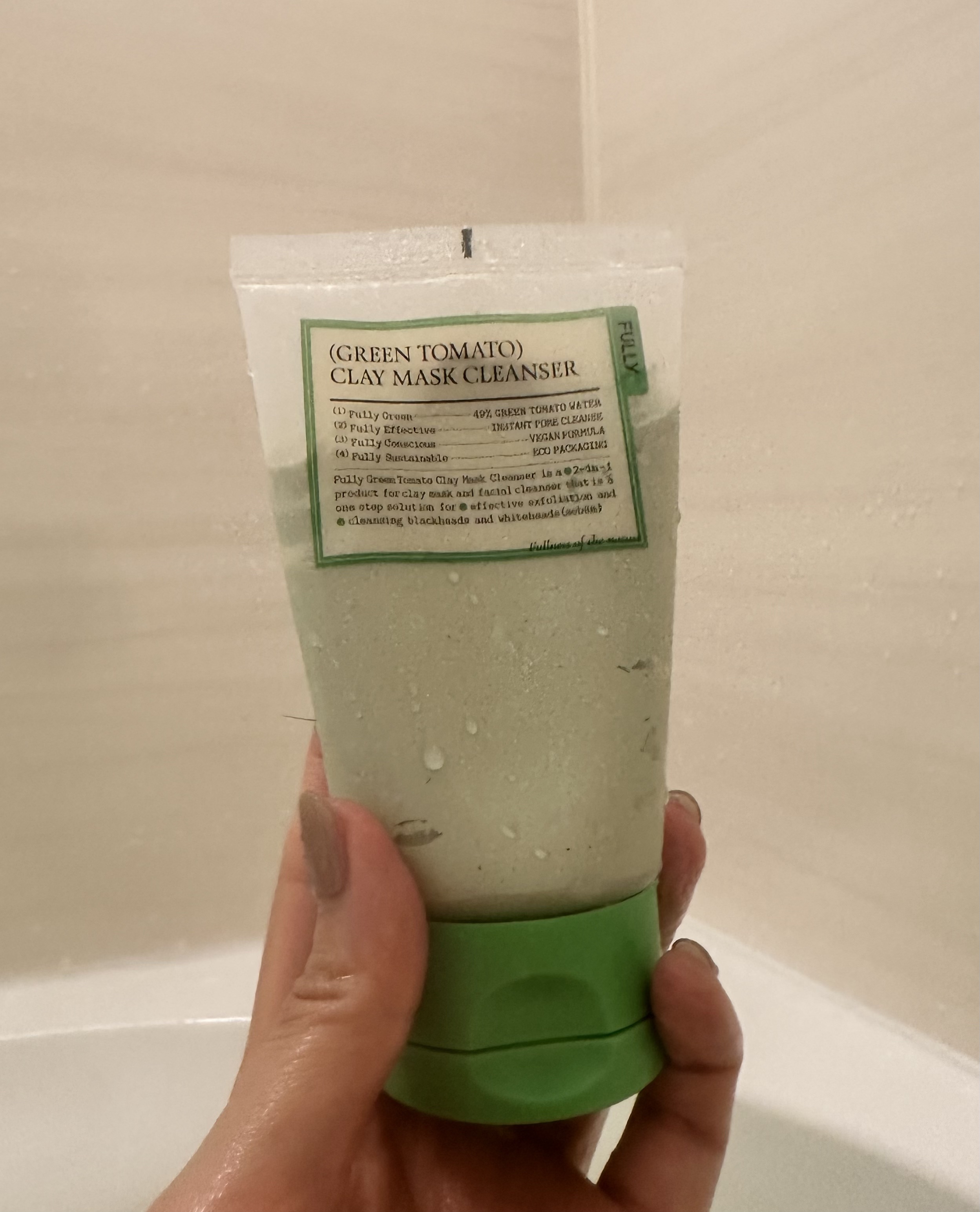 FULLYは、全商品ヴィーガン認証🌿✨ グリーントマトマスククレンザーは、弱アルカリ性に優れた洗浄力のなめらかな生クリームテクスチャーのメイクも落とせるクレイマスク+クレンザーの2in1アイテム🫧 肌の弾力改善に期待⤴⤴ 3~5分マスクパックした後は水を加えて、洗い流せば肌引っ張り感なしのつるんとした洗い上がり🌿 伸ばしやすく、タレないので、部分的にマスクパックとして使うのが私のお気に入り💗