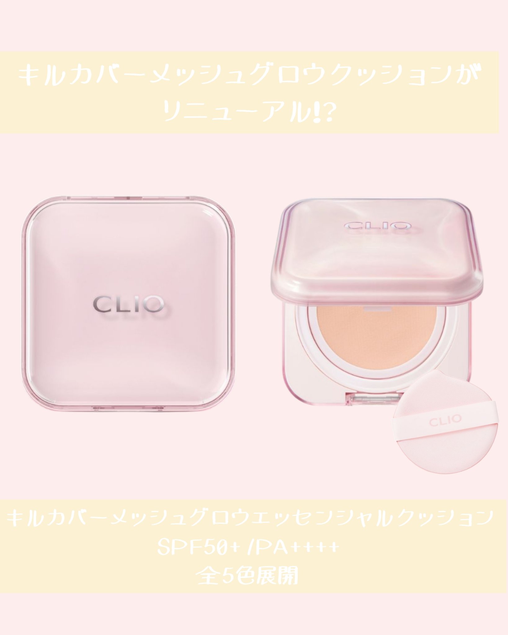 CLIOのキルカバーメッシュグロウクッションがリニューアルしました🕊️CLIOキルカバーメッシュグロウエッセンシャルクッション全5色展開 SPF50+/PA++++本体のみ¥3190/リフィル付き¥3960メッシュになっててぷにぷにの感触が気...
