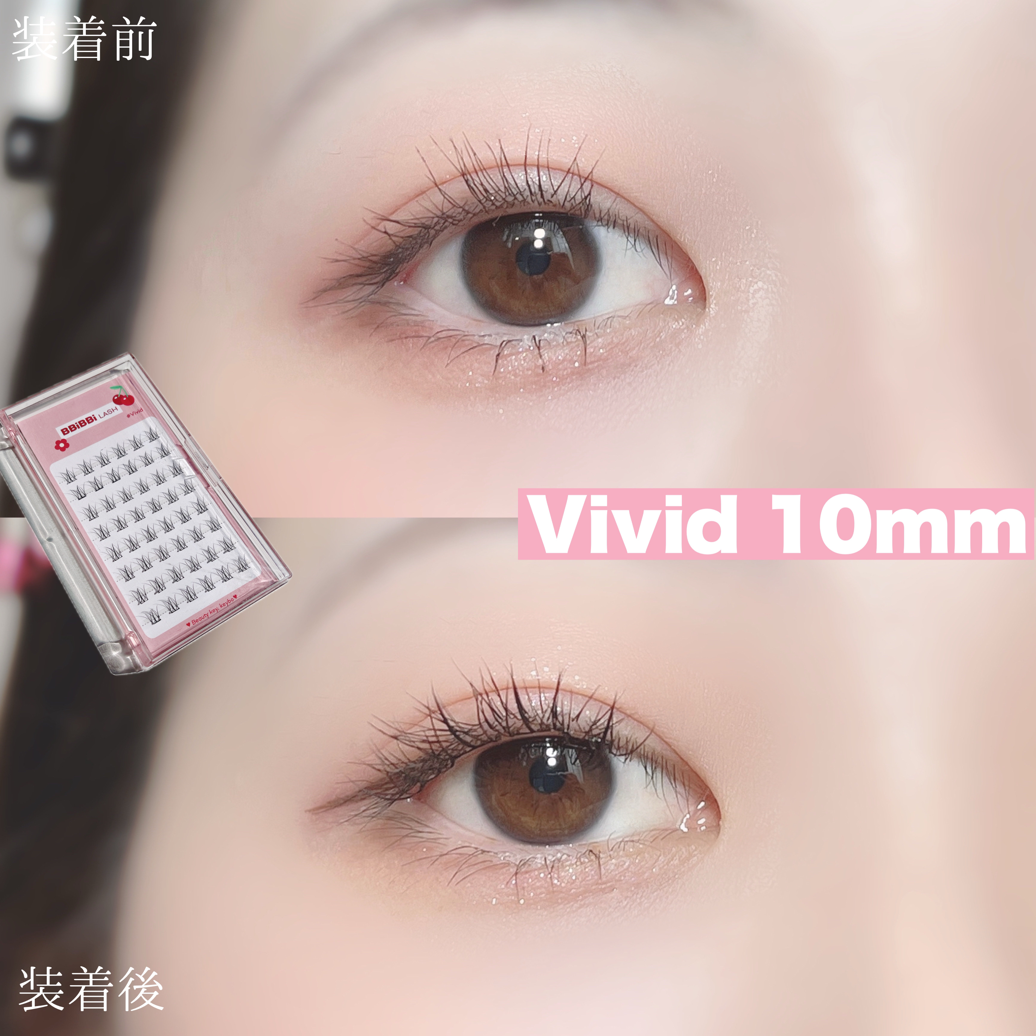 グルーと一体型のワンタッチラッシュ 透明のグルーが薄く塗られているのでいつでも簡単に取り外してポッとつけられる Vividは長さが10㎜ 束感が少なくナチュラルなデザインなのでつけまつ毛初心者さんにオススメ! つけているのを忘れるくらい違和感もなく、持続力も高いのでとっても気に入っています♡