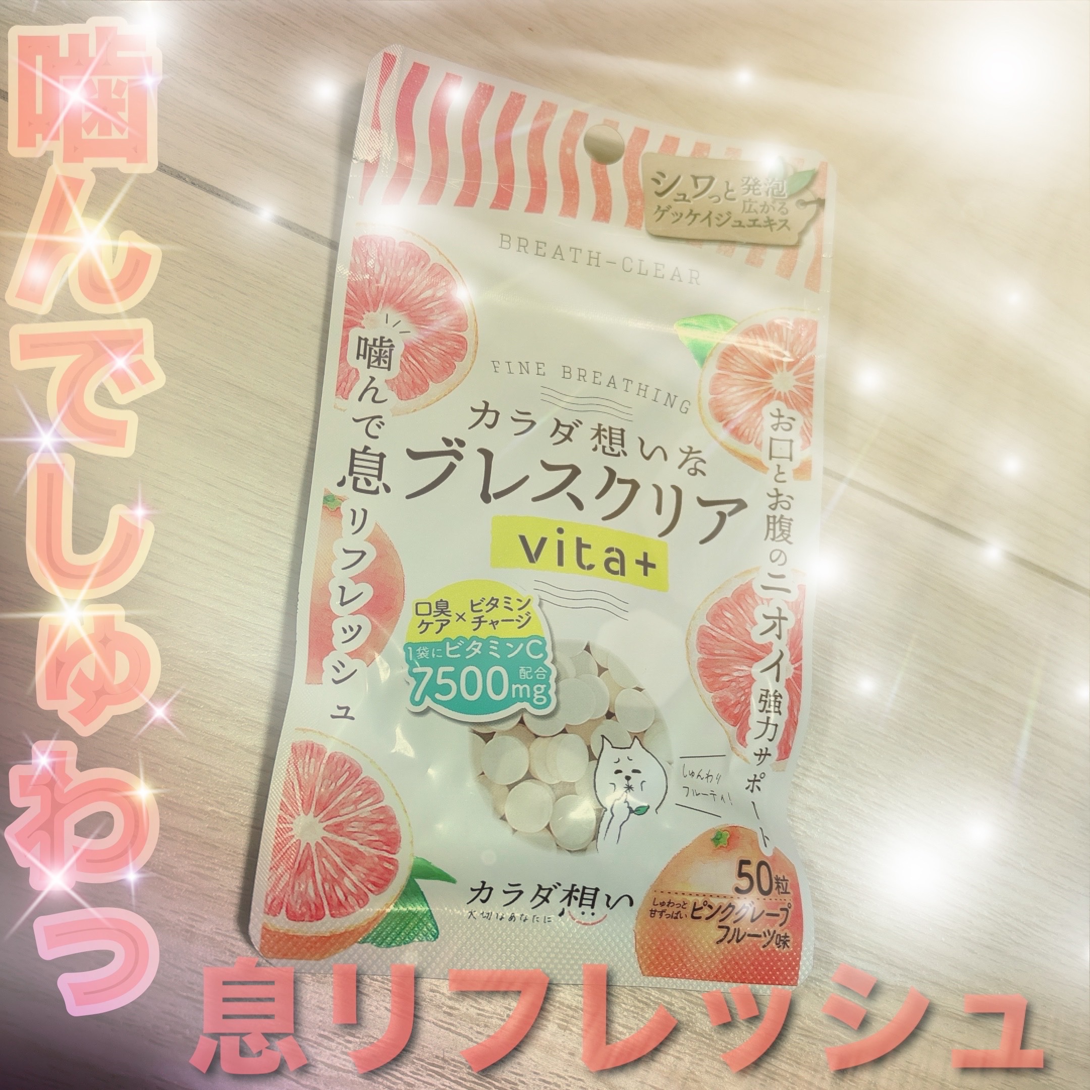 \口臭ケア×ビタミンチャージ/▶︎ブレスクリアvita+口臭ケアしながらビタミンも摂れるカラダ想いなタブレット。1袋にビタミンCが7,500mg配合されていて、気になるニオイケアと同時にビタミンも摂れてしまうのが◎レモン味でしゅわしゅわ〜っと...