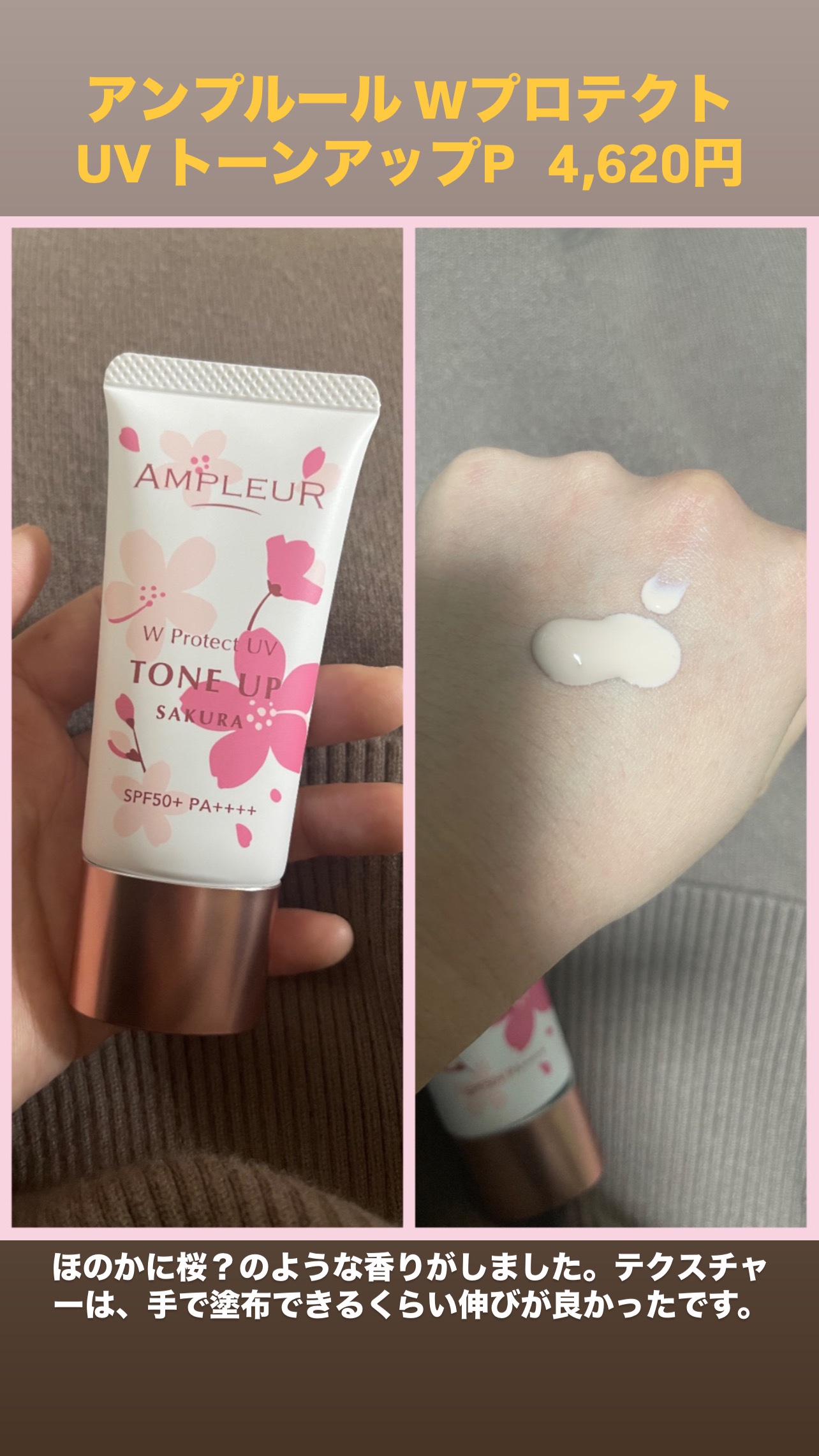LIPSのプレゼントでいただいた「アンプルール WプロテクトUVトーンアップP」SPF50+PA+++です。数量限定デザイン♪春全開なデザインと高級感のあるフタに心躍ります🤭日焼け止め兼日中用美容液で花粉、ちり、ほこりから守りながらブルーライ...