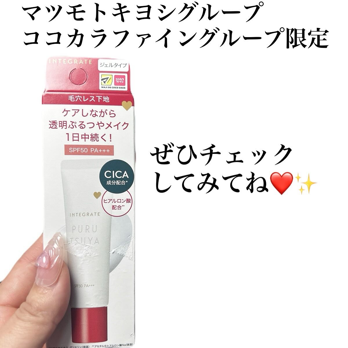 インテグレートの新作下地❤️ぷるつやベースSFP50、PA++++つやを与えながら毛穴をカバーしてくれるぷるつや処方だよ!さらさらエアリーパウダーが、毛穴をふんわりカバーしながらうるみフィットパウダーなどのうるおい成分でぷるんとしたつやを演出...