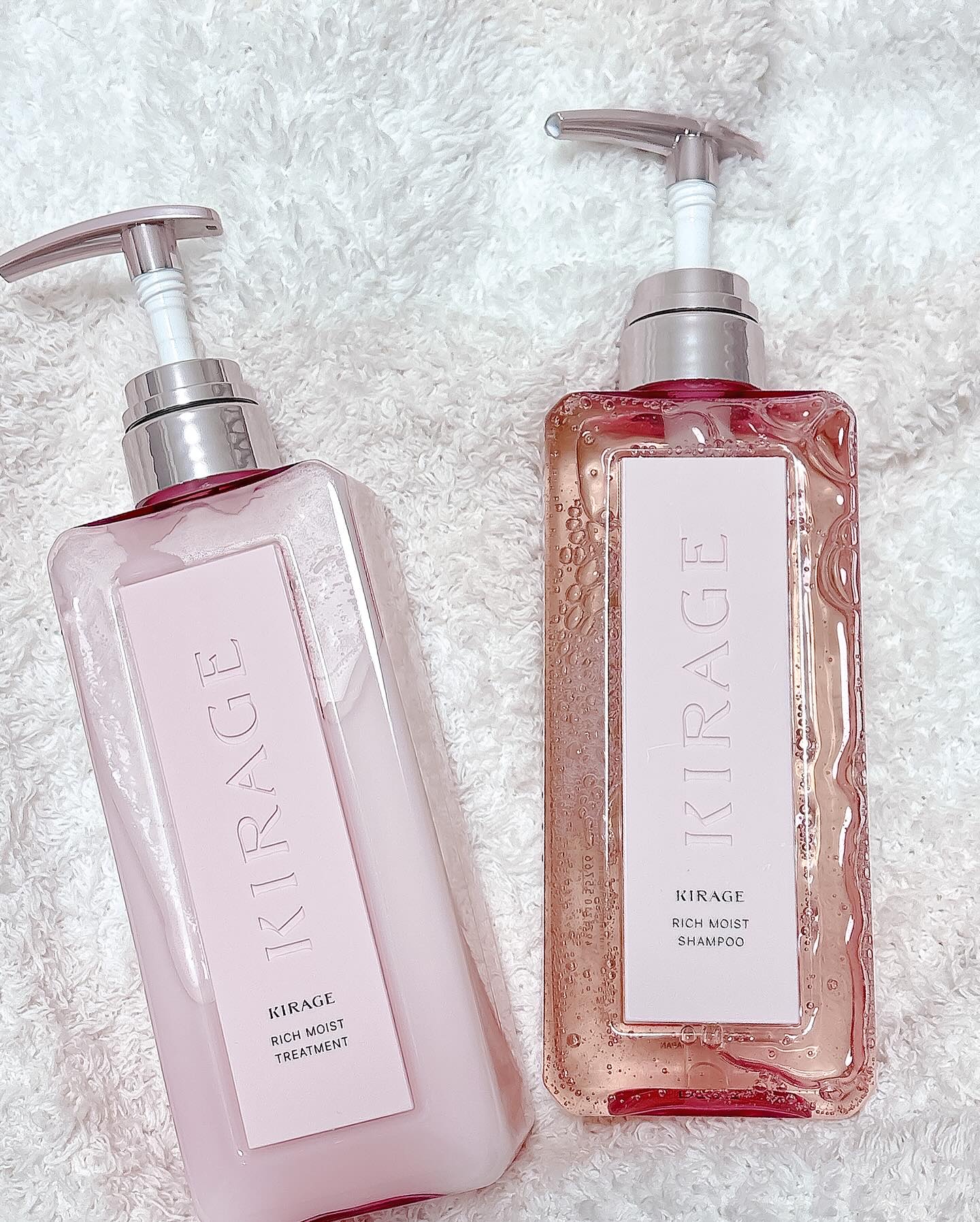 「キラージュさまからいただきました」🎀KIRAGE🎀リッチモイストシャンプー/ヘアトリートメント¥1,540♡♡♡♡♡♡┈┈シンプルだけど可愛さのあるボトルが特徴のキラージュのシャントリ💕〝天使の生ツヤリング〟で綺麗な髪に!髪と地肌に摩擦の少...