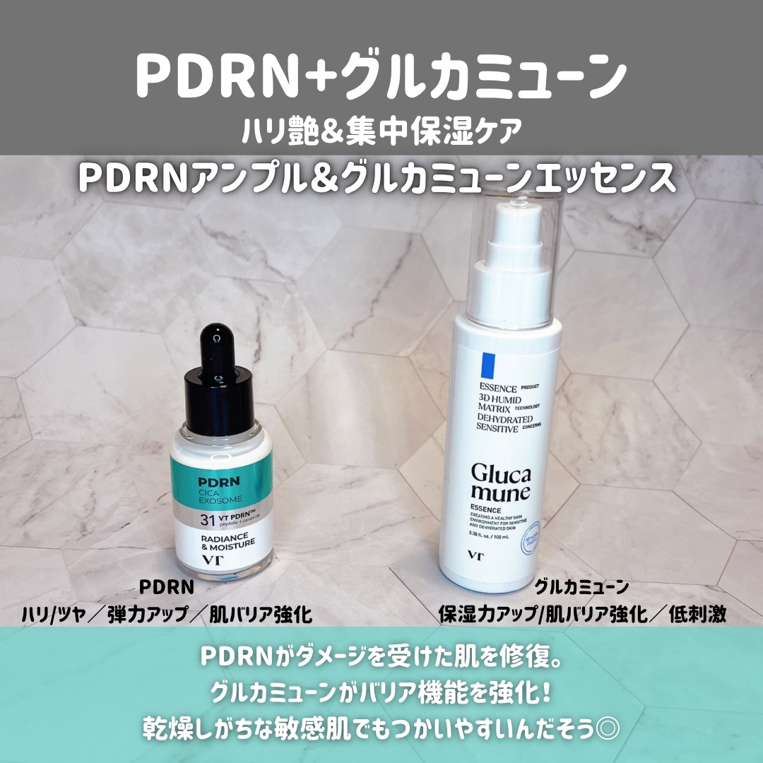 保存必須📝VT美容液の組み合わせ✨PDRNは他の成分と合わせやすいと言われているので組み合わせなきゃ損!!✨🫶おすすめ4つ!あなたはどれが好き??PDRN×❤️アゼライン酸アンプル🤍TXトーニングエッセンス2000SHOT💙グルカミューンエッ...