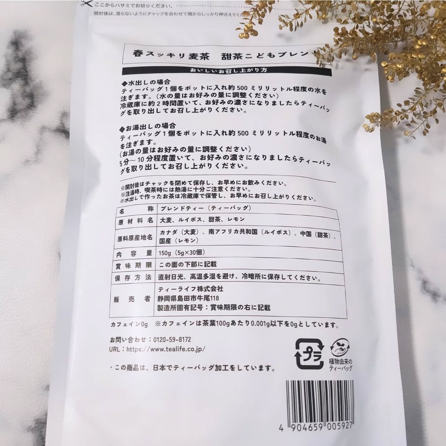 CHA+OCO春スッキリ麦茶甜茶こどもブレンド30個入✨キレイと健康を応援する静岡の通販会社、ティーライフより。麦茶をベースに仕上げたノンカフェインのブレンド茶!季節の変わり目が苦手、子供がジュースばかり飲んでいる、春はモヤモヤ、、、そんな悩...
