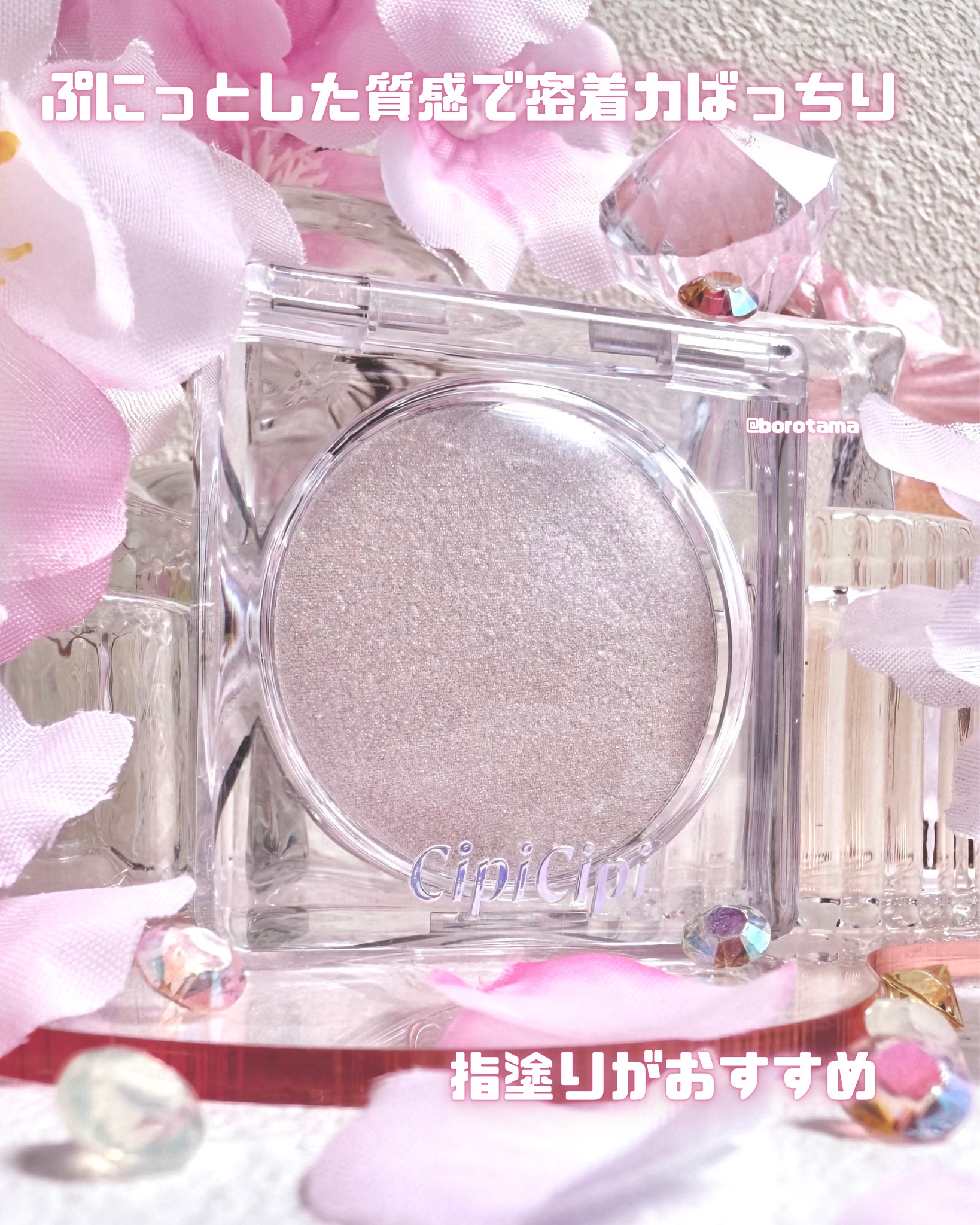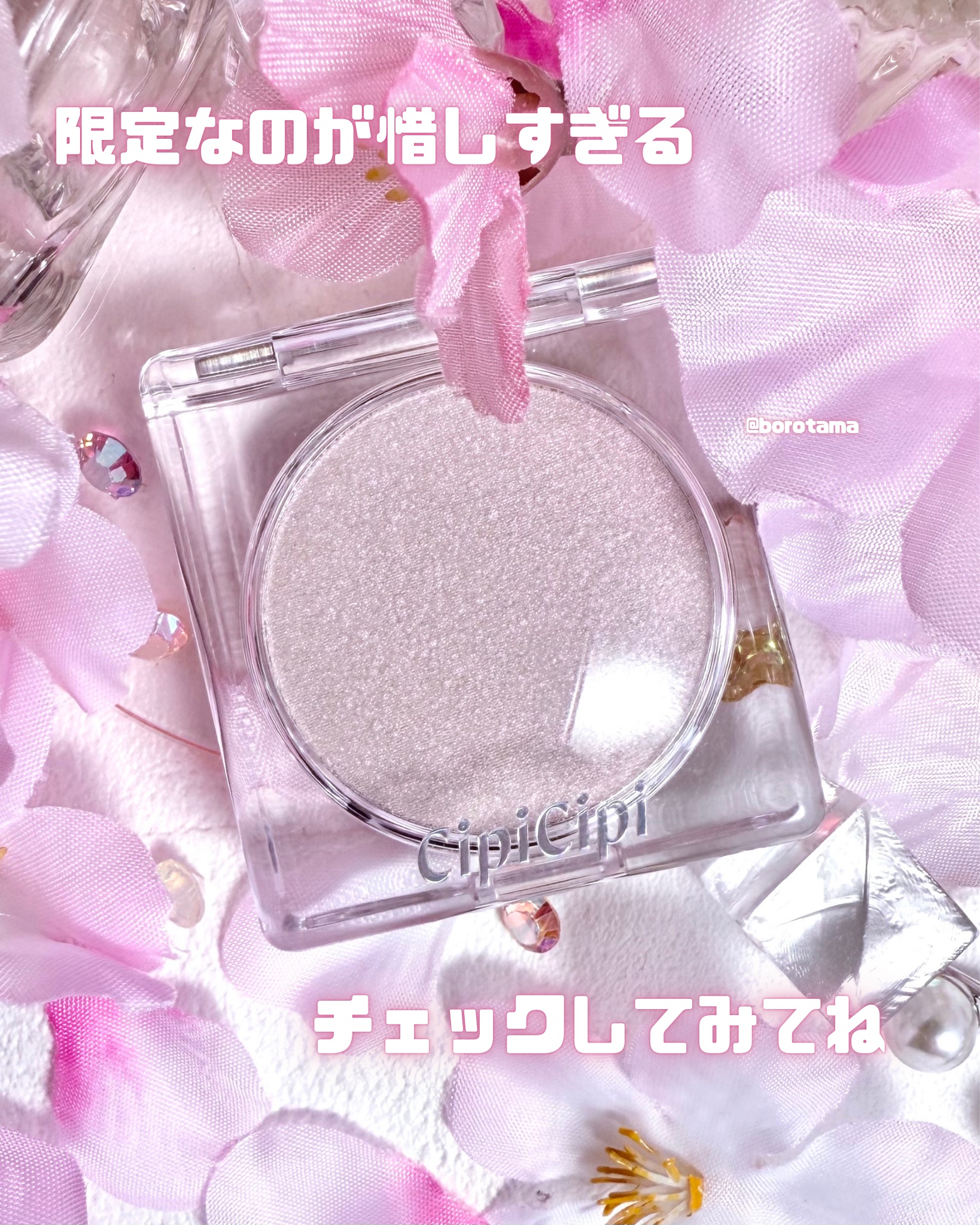 一見ホワイトっぽく見えるんだけど実際に肌にのせるとピンクの偏光ラメが輝いてめちゃくちゃ可愛いの…目頭や鼻にピンポイントにのせてもブラシでふんわり顔全体にのせてもかわいい♡ CipiCipiで人気なブリンブリンハイライターから限定色“101 ピンクオーラ”が登場🪄💓 ぜひ気になった方は、チェックしてみてください🫶🏻️💓