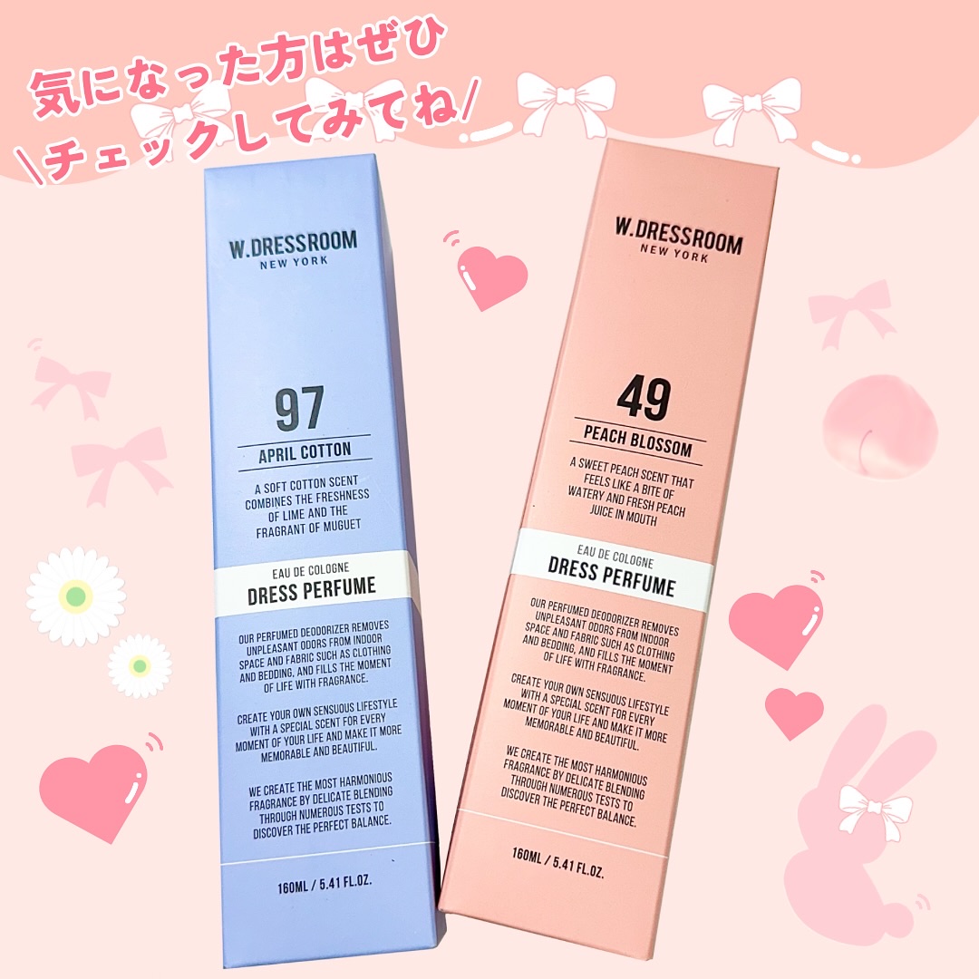 @w.dressroom_jpW.DRESSROOM(ダブルドレスルーム)お風呂あがりにドレスパフューム✨#49PeachBlossom水気を含んださわやかな桃果汁が口いっぱいに広がるような甘い桃の香り#97AprilCottonライムの爽や...
