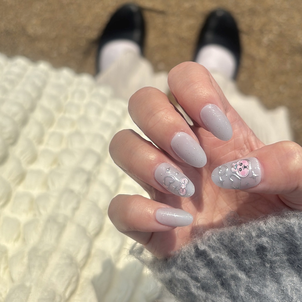 シールになってて貼るだけ簡単! そしてデザインも可愛すぎる〜🩶 シールタイプだからファッションに合わせて手軽に変えられるのも魅力の一つ🫧 爪よりワンサイズ小さいネイルチップを装着するとより自然に仕上がる✨✨