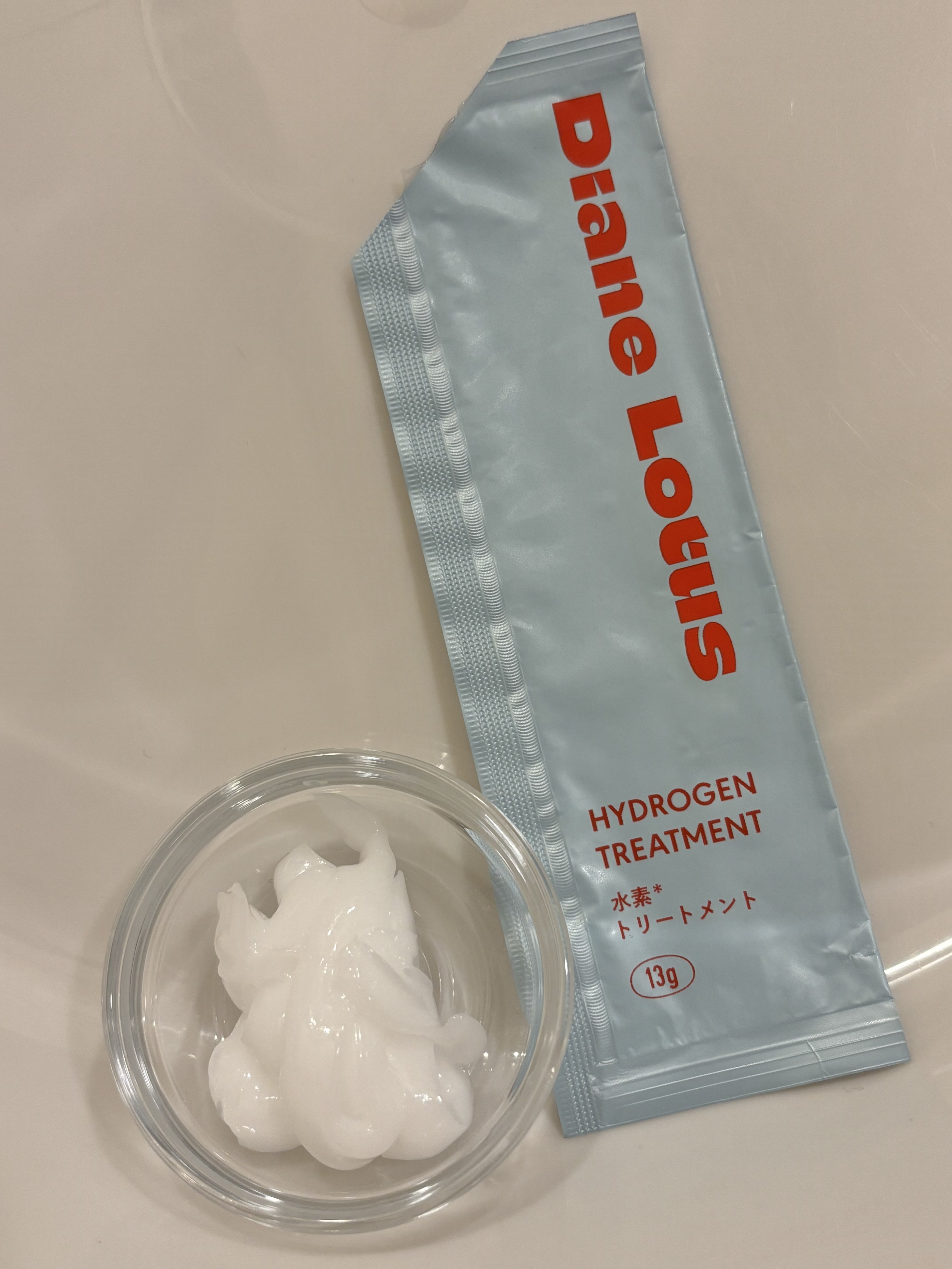 【使った商品】DianeLotus水素トリートメント13g×4包入り 1,716円水素泡をゲルの中に閉じ込めて高濃度化したヘアトリートメントです。ケラチン、アルガンオイル、セラミドを配合し、ダメージ髪を潤い補修。シャンプー後、髪全体になじませ...