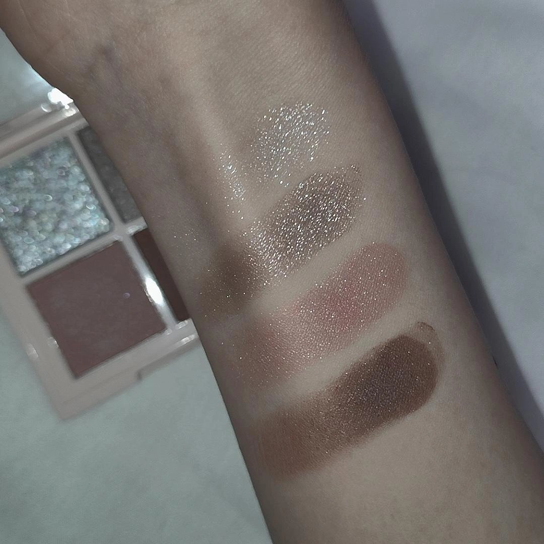 - 透け感カラーに、キラめきレイヤードをプラス #質感ミックス アイシャドウ 1. 4つの異なる質感をミックス マット・サテン・パール・グリッター、4つの質感が楽しめるマルチパレット 2.透け感そのまま!キラめきのレイヤード 重ねても、キレイにキラめく透け感カラーで、澄んだ奥行きのある目元に 3.ふわっとエアリー、なのに高密着 キメの細かな微粒子パウダーがふわっとフィット。軽いのに、しっかり密着 ■001 グレイジング ブラウン 肌にとけ込むシックなグラデ ニュアンス ベージュ ■002 サンセット ブリック マットとキラメキで旬顔! スモーキー テラコッタ ■003 ヴィンテージ ローズ 甘さおさえめでオトナっぽい ボルドー ピンク ■004 ロージー ブラウン 上品に盛れる! ローズ ブラウン ■005 ダスティ モーヴ 繊細なニュアンスを秘めた グレージュモーブ ■006 サファリ シマー 印象深いまなざしの カーキグリーン ■007 ジュエル ムーン ほんのり甘めのキラめき プラムピンク ■008 カシミア ヌード 上質なカシミアを纏ったような ウォームベージュ ■013 ローズ ラスター クールなまなざし グレイッシュローズ ■015 コズミック スター 幻想的な煌めき ブロンズピンク