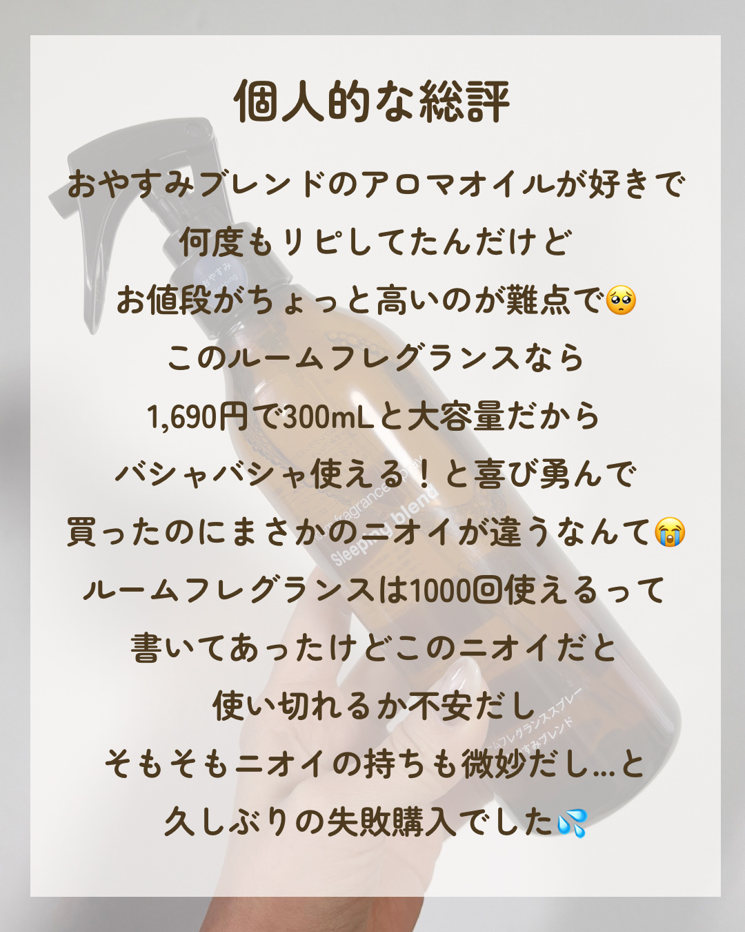自分もオイルの方好きでルームフレグランス買おうと思っていたので、香りが違うの驚きました😭参考になります、ありがとうございます🙇