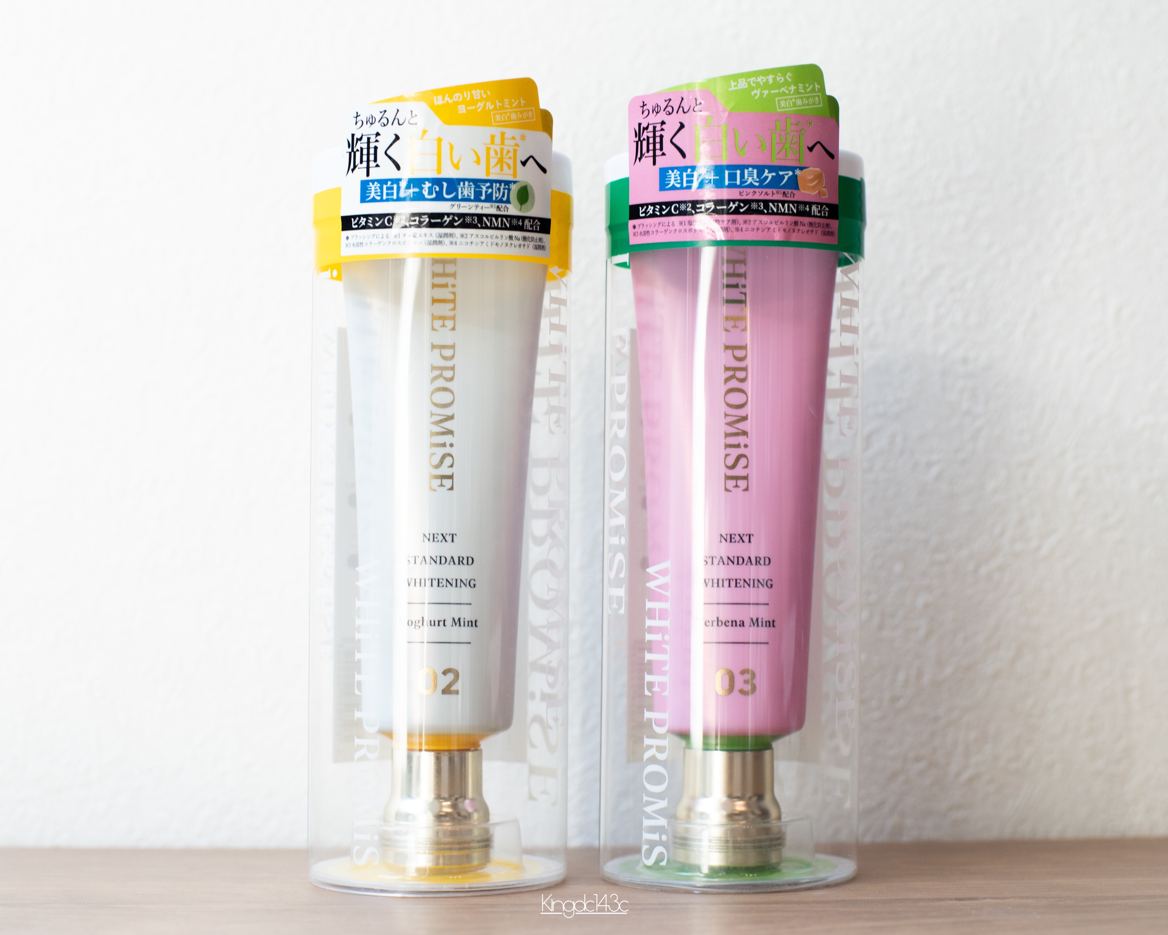 ✴︎WHiTEPROMiSE02ヨーグルトミント03ヴァーベナミントビタミンC*1・コラーゲン*2・NMN*3など、美容液成分がマルチに配合。美容液成分で磨く!美白(ブラッシングによる)美容液発想の新感覚歯みがき粉🪥〰︎かわいいパッケージの歯...
