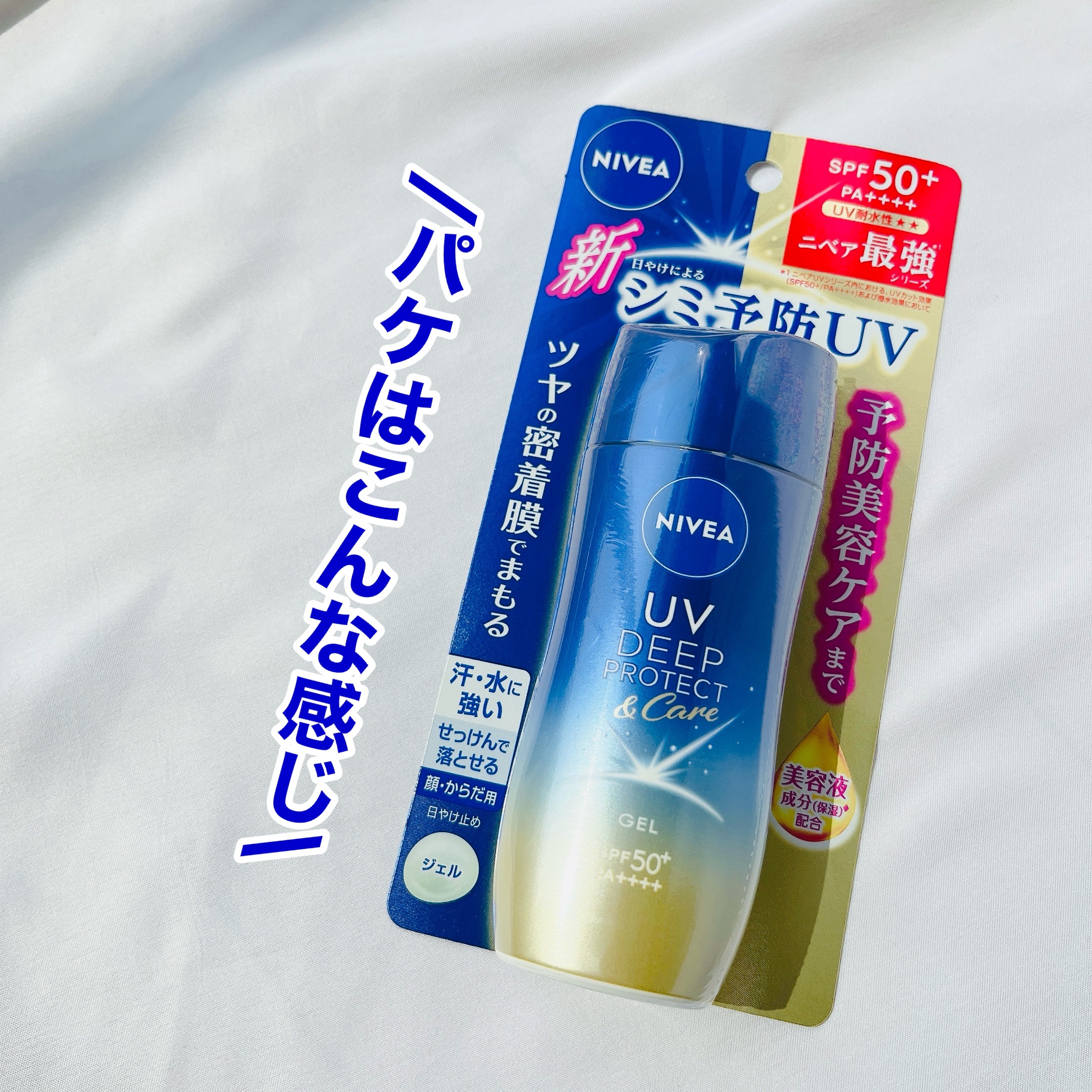 ニベア花王からいただきました。ニベアUVディーププロテクト&ケアジェルがリニューアルされました。【商品特徴】◆日やけによるシミ予防UV※1。予防美容ケア(日やけによるシミ予防※1)まで。SPF50+/PA++++。◆汗・水に強い...