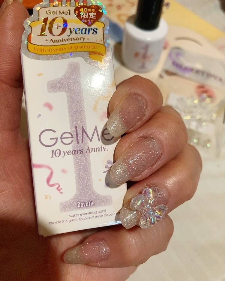 アットコスメ 口コミランキングで1位のセルフジェルネイルの「Gel Me1(ジェルミーワン)」💖 工程が多いジェルネイルのサンディング、ベース、トップ、拭き取りが不要でこれ一つで済むし、可愛い、オシャレなカラーが豊富🥰 10周年を迎える「ジェルミーワン」が10周年限定色4色、10周年記念ロフト限定色、10周年記念PLAZA限定色各1色が発売❣️
