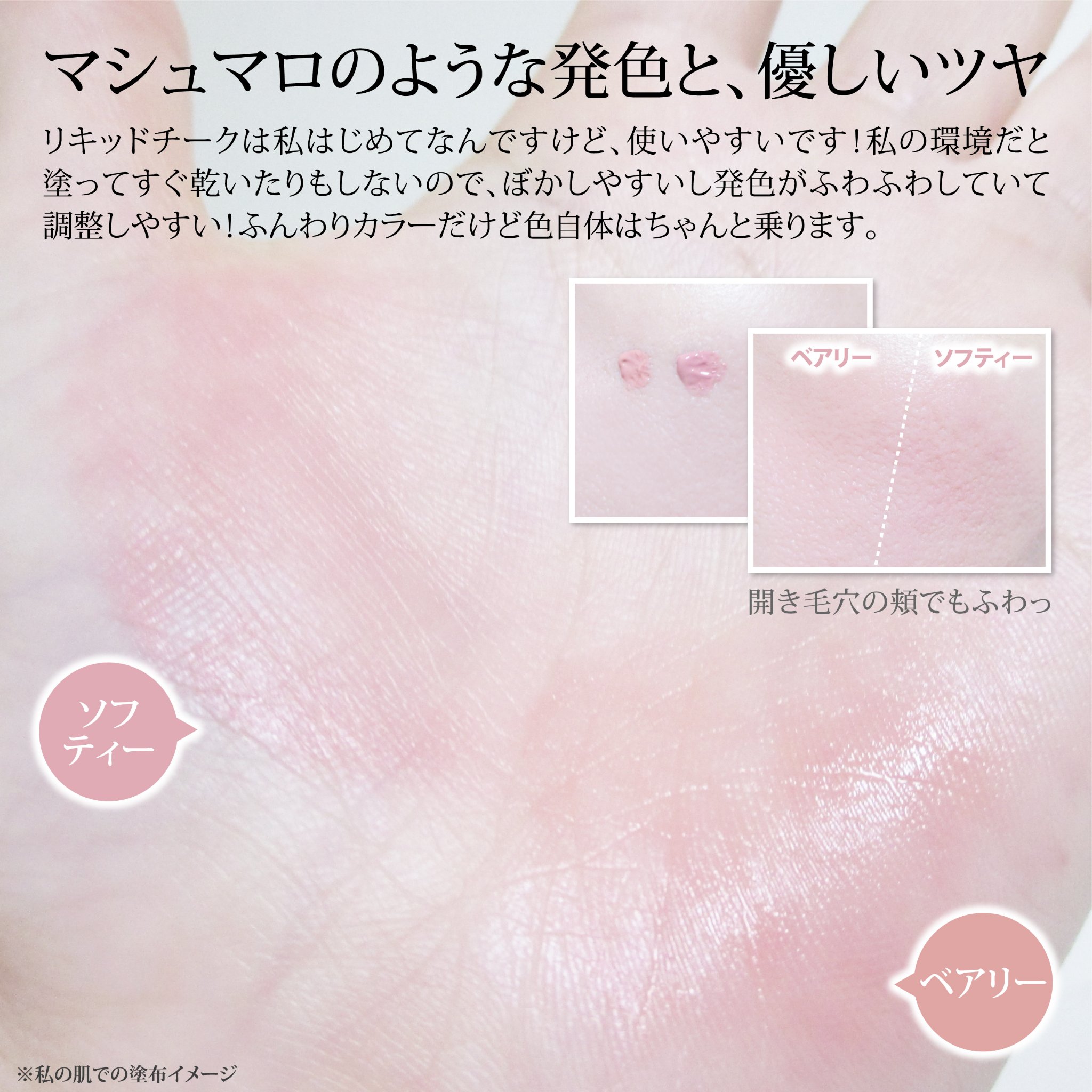 | リキッドチークランキング第2位 | お肌に乗せた瞬間は一瞬「濃くない!?」って思うかもしれないけど、馴染ませるとほんわり…マットでベタつかず、サラリな仕上がりです | 詳細を見る | |
