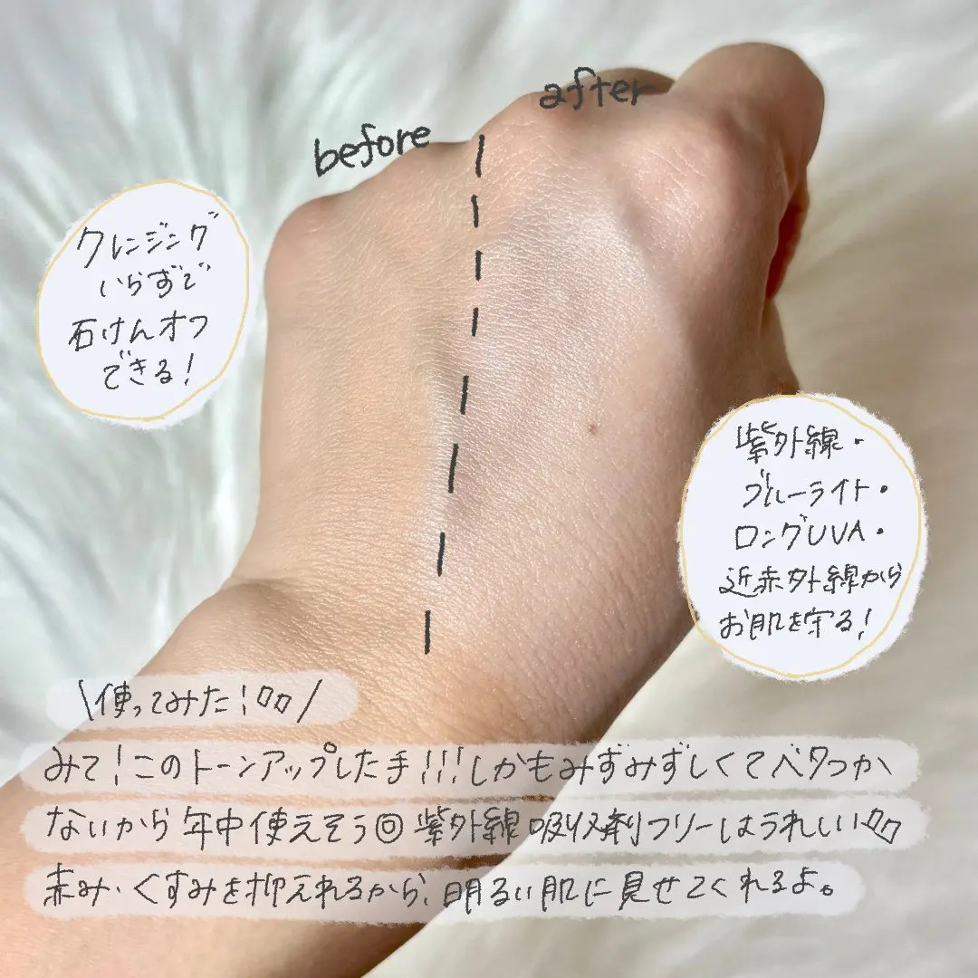 ベスコス受賞の人気UV✨ 美容液成分*86%でみずみずしくうるおいに満ちた、発光したようなトーンアップ肌を叶えます🪄︎︎◝✩ 紫外線吸収剤フリーや紫外線、ブルーライトなどの4つの光ダメージをカットして肌を守る効果まで。 クレンジング不要で石けんでオフが可能な肌に優しい処方&手軽さが嬉しいです♩