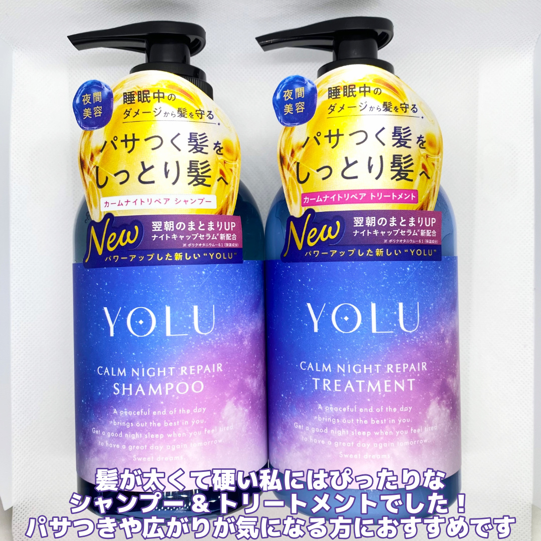 睡眠中も髪を守る。YOLUカームナイトリペアシャンプー/トリートメントレビューLIPSを通じてYOLU様からカームナイトリペアシャンプー/トリートメントを頂きました 「ナイトセラミド※1配合」でダメージを受けた髪に潤いを与え、「ネムノキエキス...
