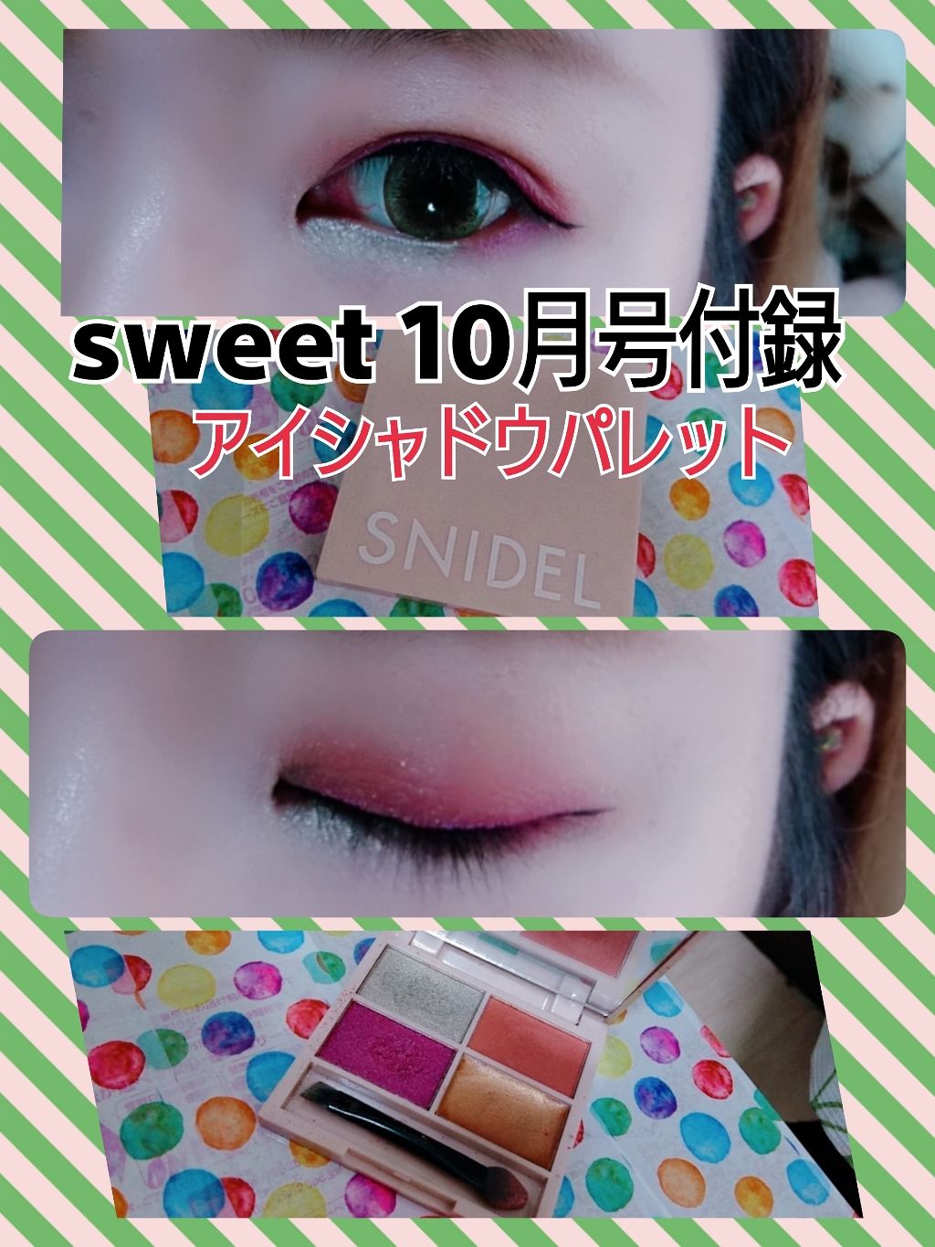 snidelのコスメを4つ紹介します。コレは、元々sweetの雑誌の付録コスメになります。まずその中で1つずつ紹介していきます!まず1つめは、snidelのマルチカラーパレットです。コレはsweet2018.10についているものになります。左...
