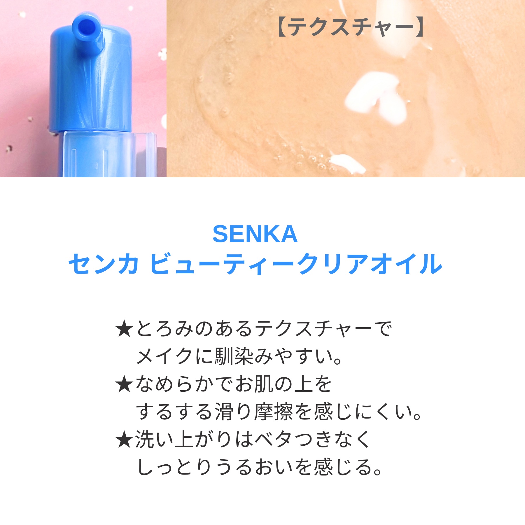 SENKAさまからいただきました。SENKAセンカ ビューティークリアオイルセンカから新商品登場❕毛穴の角栓まで浮き上がらせて翌朝の化粧ノリを整えるメイク落とし。2つの美容液成分inで洗い上がりまで心地よい使用感に。とろみのあるオイルがメイク...