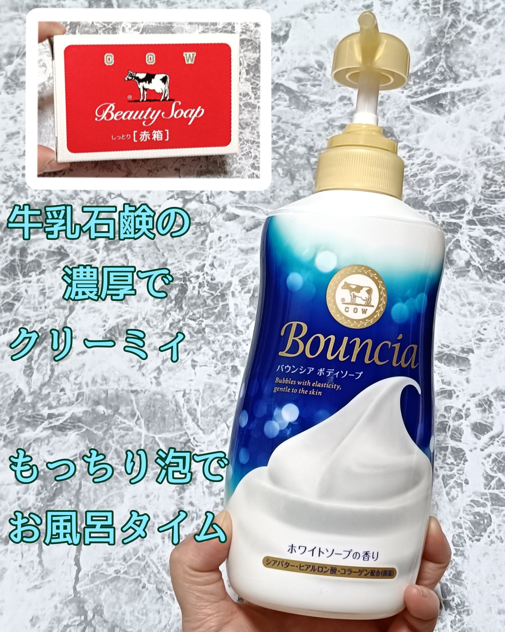 牛乳石鹸さまからいただきました。バウンシアボディソープホワイトソープの香りボディソープ「バウンシア」がリニューアル🐄牛乳石鹸史上最高*の濃厚クリーム泡になったよ🫧ツノが立つほど濃厚でクリーミイ。疲れた体をもっちり泡が包み込み、うるおいを守りな...