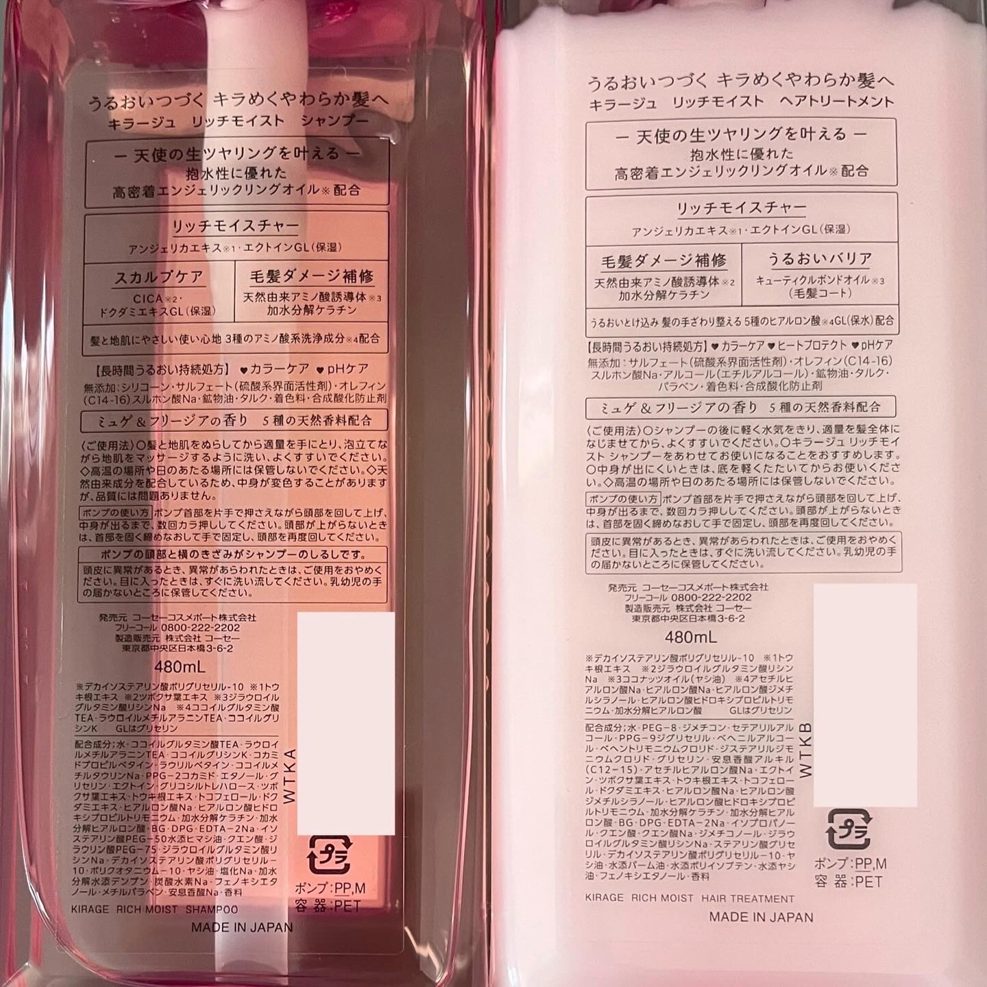 #PRキラージュさまからいただきました。☑︎リッチモイストシャンプー☑︎リッチモイストヘアトリートメントピンクのパッケージが可愛いKIRAGEのシャントリ🫧シャンプーはとろみがあるけど泡立ち良い🙆トリートメントは少し硬めのテクスチャで髪に密着...