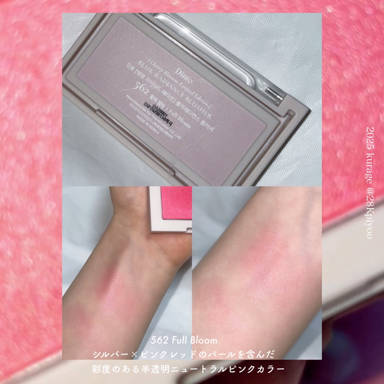 ピンクビームチークDintoブラーフィニッシュブラッシャー562FullBloom桜盛り以前レビューした桜エディションのチーク🌸💕満開の桜,舞い散る花びらが、空と大地を桃色に染めるピンクビームに艷めくチーク桜を感じる少し暖かみのあるピンクベー...