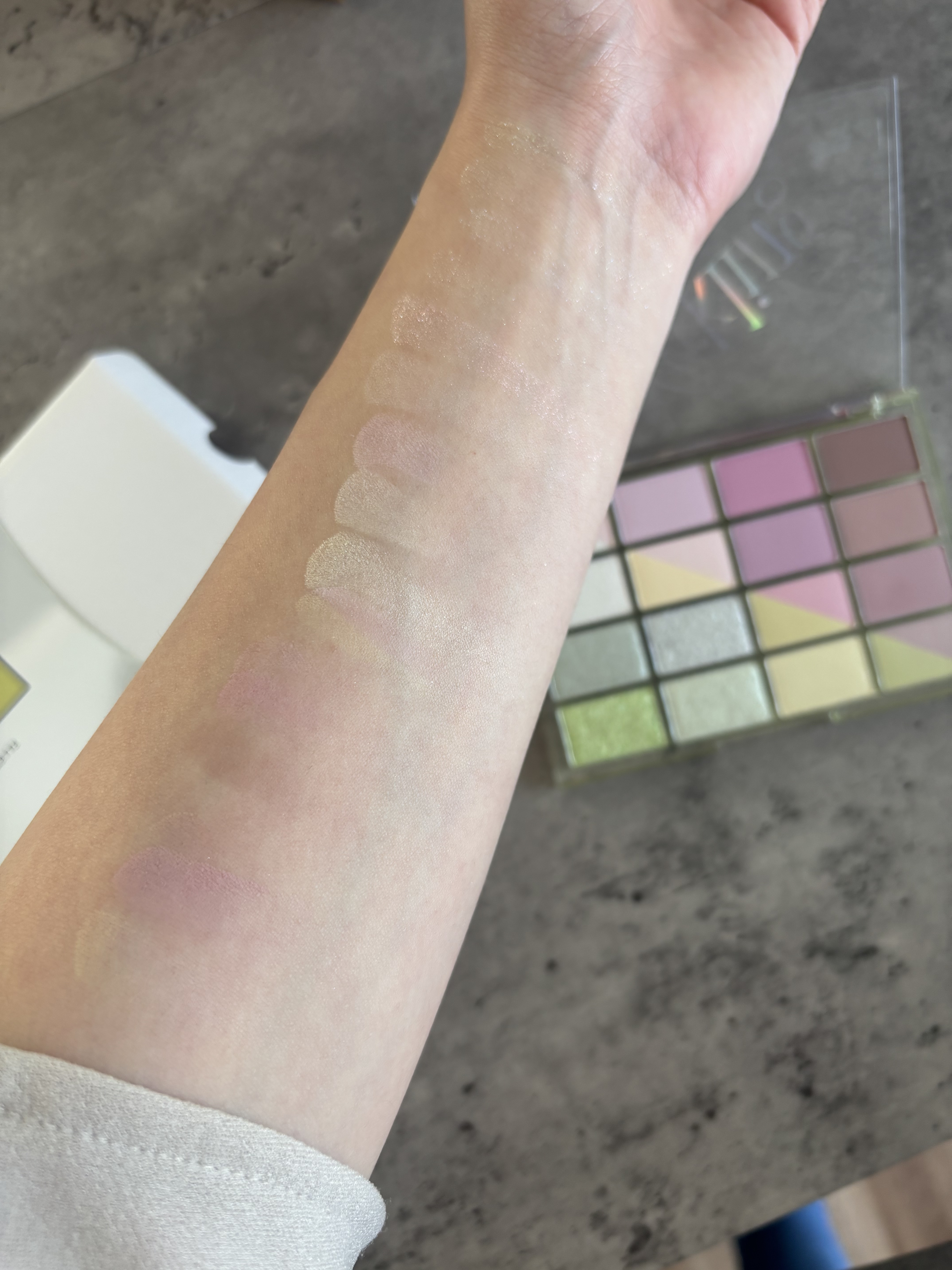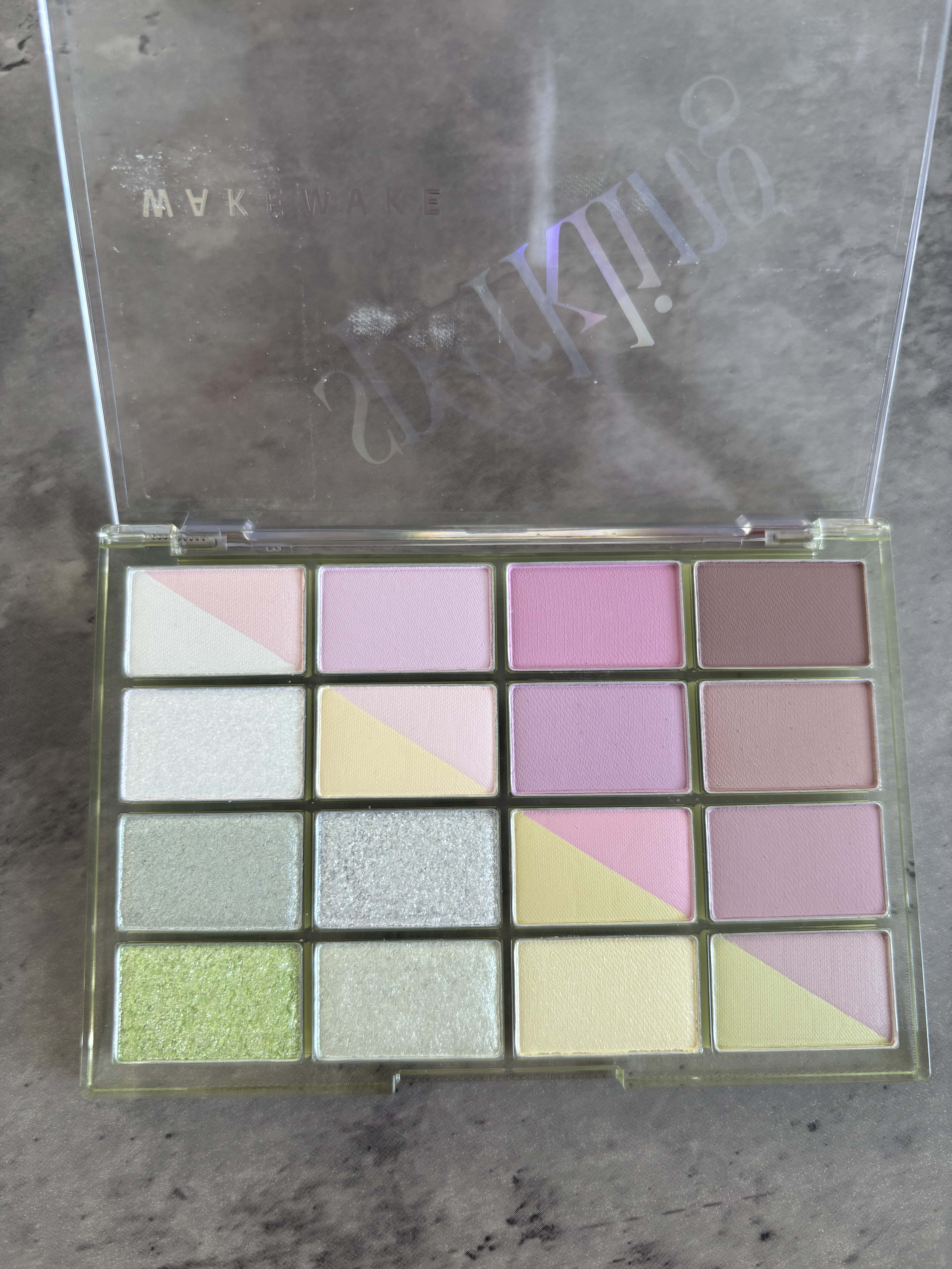WAKEMAKEといえばアイパレ。 豊富なカラバリで似合うが見つかる。 今回使ったのは17.ライムクラッシュブラーリングなんと20色のパレット。 ピンクとライムがメインのパレットで春夏に使いたいかな。