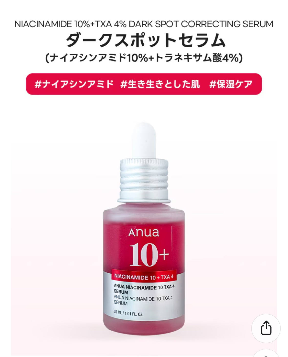 商品詳細情報Anua ダークスポットセラム