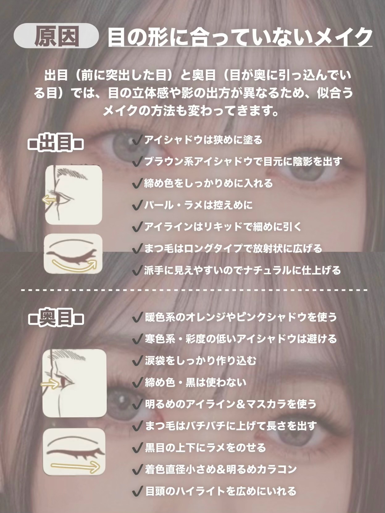 ベースメイクの順番はファンデーションの種類によっても違うのですが、 アイメイクはアイシャドウ→ビューラー→アイライン→マスカラという順番で行います。 アイメイクとのバランスを考えながら、どのリップを塗るかを決めます。 パウダーチークとクリームチークがありますが、クリームチークはムラになりやすいので初心者さんはパウダーがいいかも🙆♀️ ベースメイクの最後でもOKですが、全体のバランスを見ながら入れることでシェーディングが濃くなりすぎたりハイライトを付けすぎるなどの失敗が少なくなります。