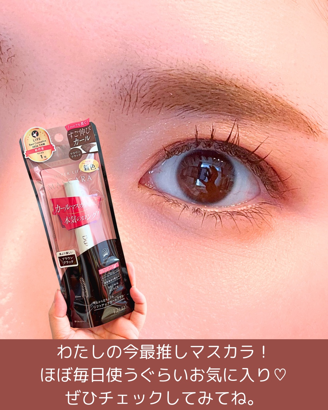 今DUPで1番熱いハイパーリフトマスカラに待望のブラウンブラックが登場したよ。 先細り束感まつ毛楽勝で本当重宝してたんだけど、ブラックだとちょい強すぎるなぁと思ってたから今回のブラウンブラックめちゃ嬉しい🥰💕 プルーフ効果もなかなかのものなのでこれから気温が上がってきても大活躍だよ☀️