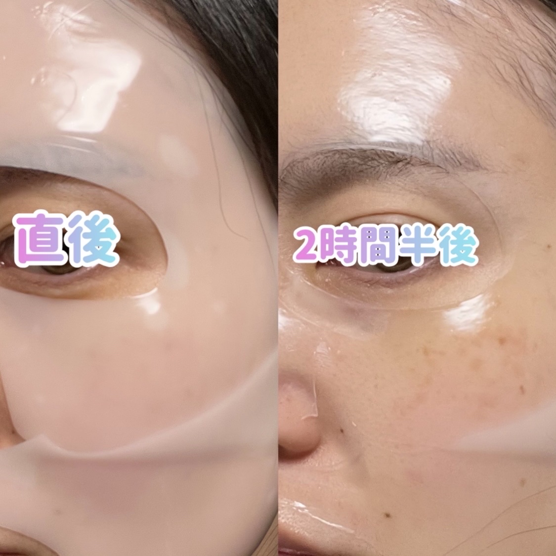ハイドロゲルタイプのマスク!! 最低3時間使用のスリーピングパック✨ 時間の経過とともに、美容液がお肌に吸収され 乳白色だったシートが透明に変わります。 お肌に貼り付けた時のひんやり感が気持ち良いです♫ 朝起きて剥がす時が私は楽しいです♫