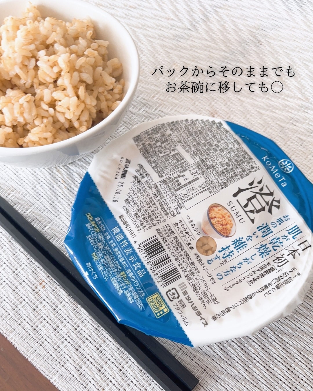 お米で日本初*お肌の潤いを維持*²してくれる玄米加工品「澄SUMU®︎」 「澄 SUMU®︎」はグルコシルセラミドが多く含まれる品種「つきあかり」を、独自加工し、食べやすくした玄米。 肌の乾燥が気になる季節、これは嬉しい♡ʾʾ