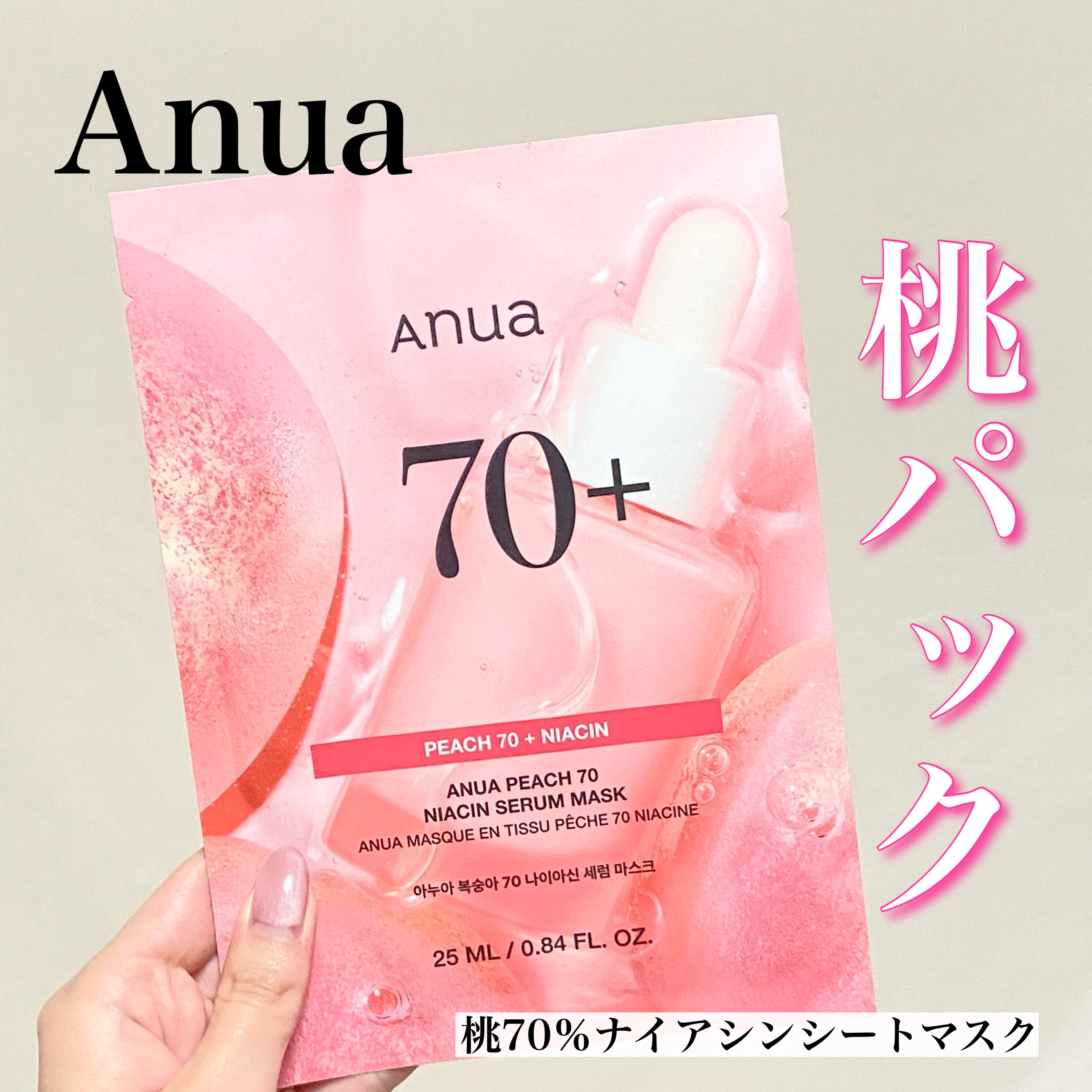 Anuaで人気の桃70%の美容液がパックになってたーー!! このパックもべたつかず、さっぱりと使えるので朝のメイク前のスキンケアにもピッタリだと思う。 ナイアシンアミド配合でうるんだ肌になれるかも。 しっかり保湿してくれるのも嬉しい!